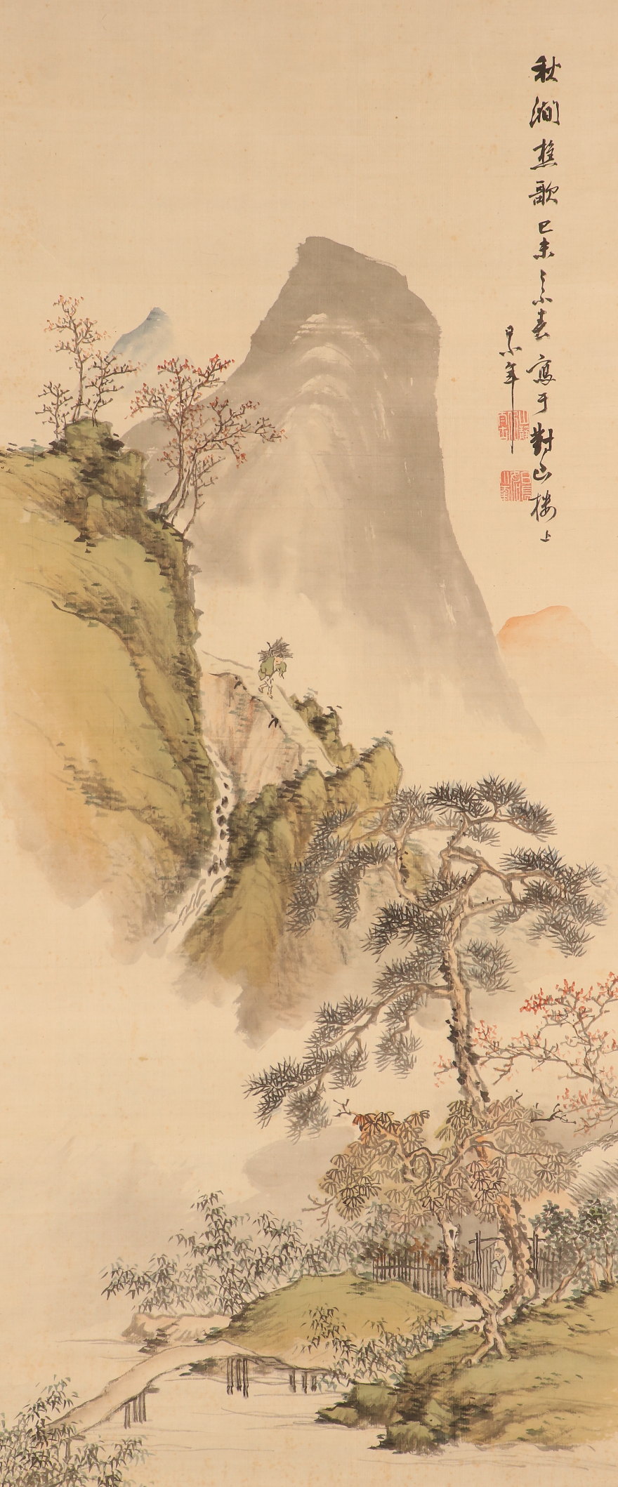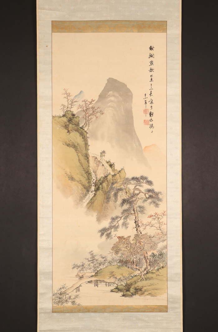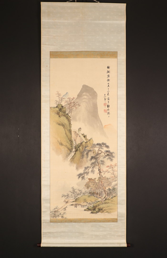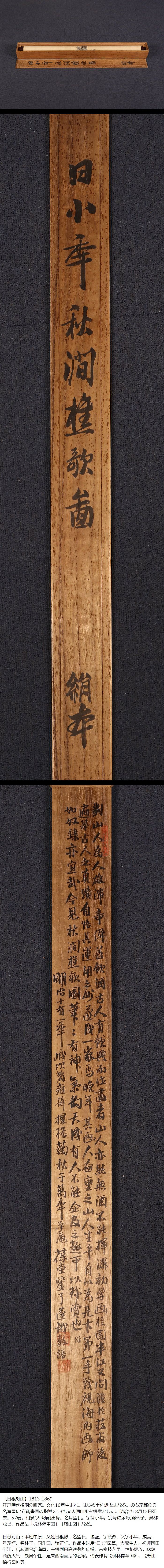 【真作】【伝来_弐】●dr2334〈日根対山〉秋景山水図 極箱 貫名海屋師事 江戸時代後期 南画家 大阪の人