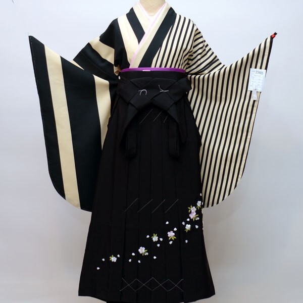 項目 | 卒業式二尺袖着物袴フルセット (適合身長:約135cm~143cm、約144cm~150cm ジュニア用へお仕立て直し致します。) ・二尺袖着物 ・二尺袖長襦袢(半襟付き) ・重ね衿(着物に縫いつけられています) ・袴 ・袴下帯(浴衣帯にも使用できます。) |