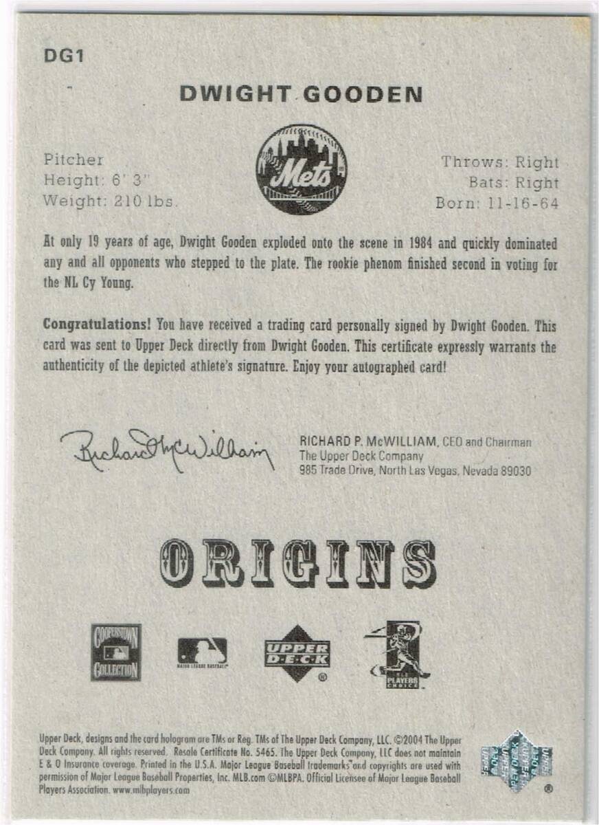 MLB メジャーリーグ ベースボールカード の 2005 UD Origins Signatures Autograph #DG1 Dwight Gooden です。 終活のため、コレクションとして長年保管していたものを出品いたします。思い入れがあるカードですので大切にしてくださる方のお手もとに行くことを願っております。 サイズは90mm × 63mmです。 カードは入手後スリーブ、トップローダーに入れて暗所にて保管しております。一般的な常識の範囲内で保管をしておりました。その他初期傷や経年による自然劣化などはご容赦ください。カードの両面の画像を掲載しておりますのでご確認ください。 当方、喫煙者はおりません。 その他、何かご質問がございましたらお問合わせください。 | |