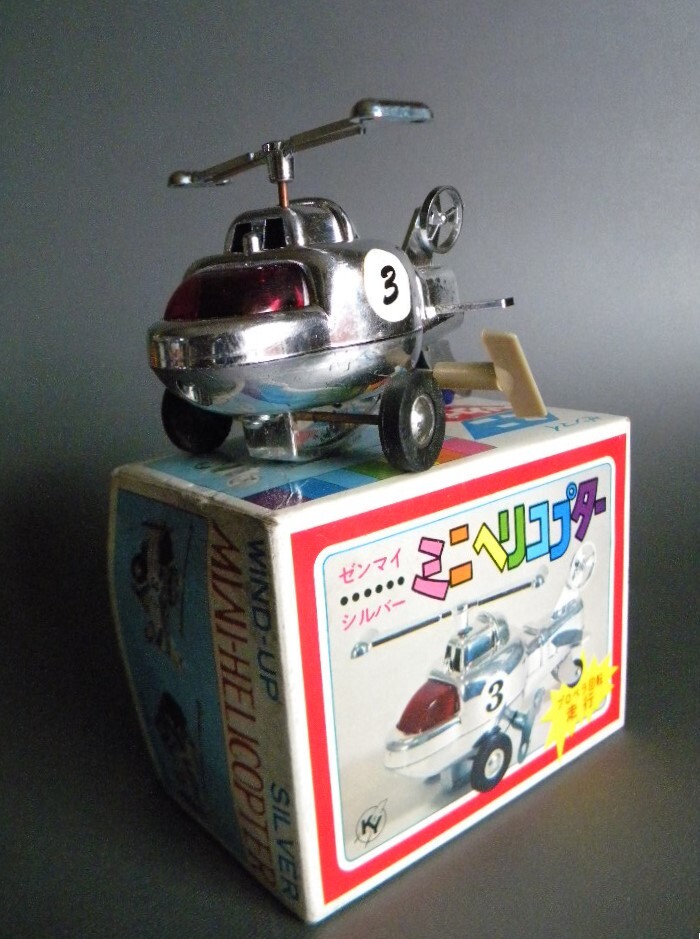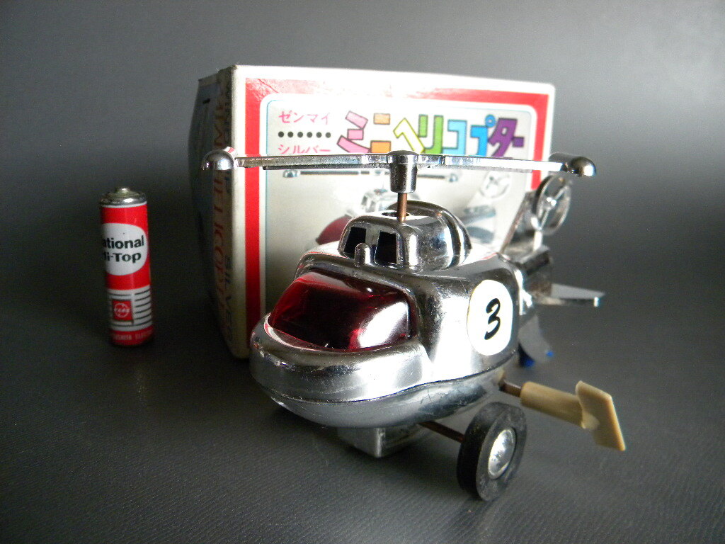 当時物 ★★日本製 HELICOPTER 作動良好 ヘリコプター !! 回転プロペラ 走行 ゼンマイ 飛行機「定形外 LP可」★★ 未使用 デッドストック 1