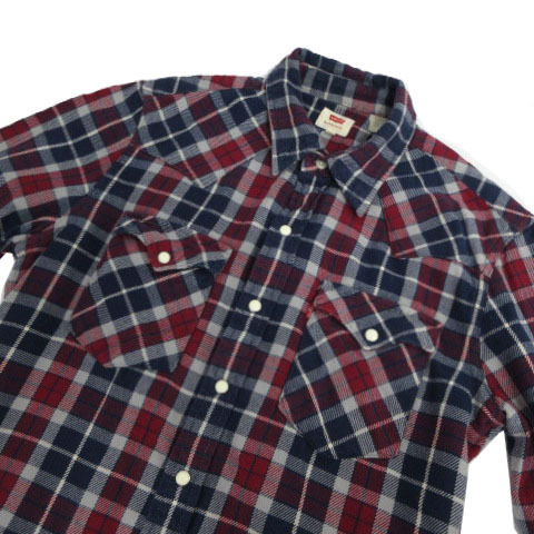 リーバイス Levi's シャツ 長袖 コットン チェック レッド 赤 ブルー 青 ホワイト 白 S メンズ