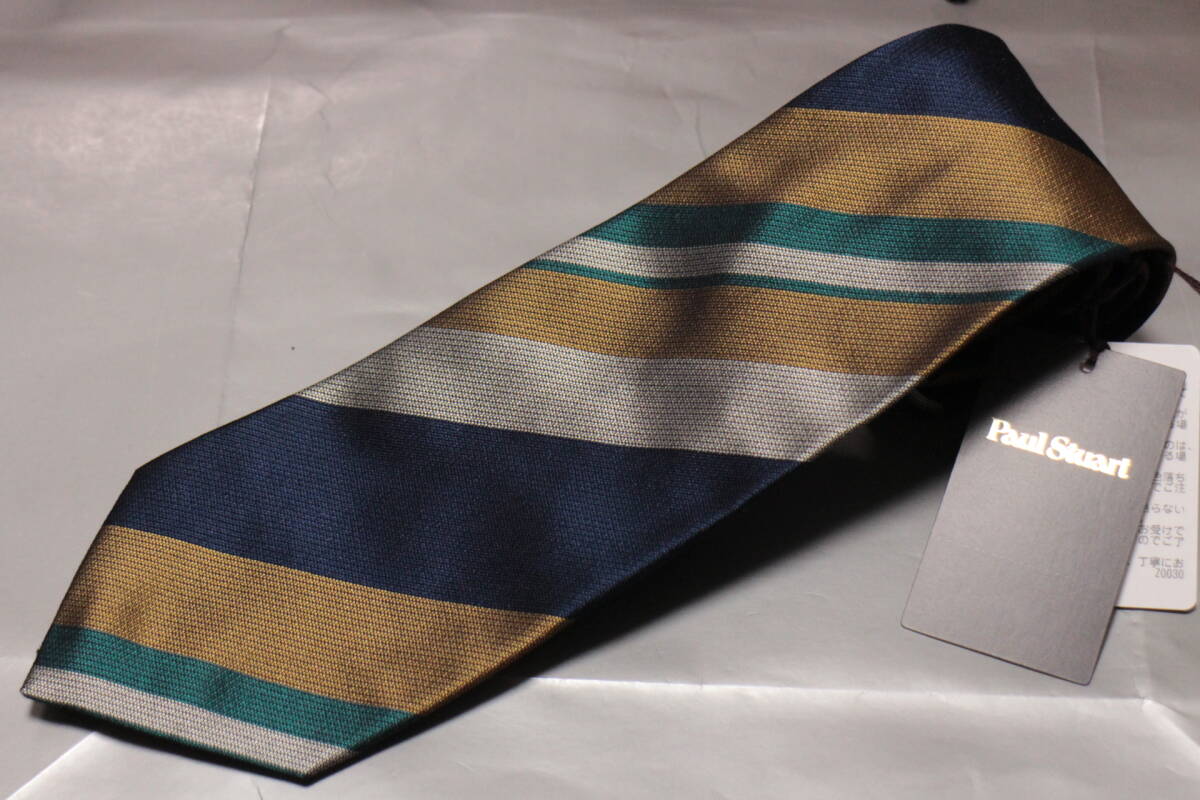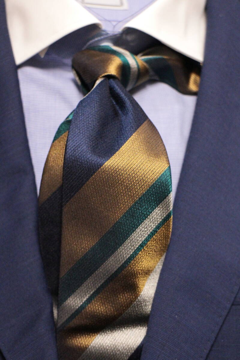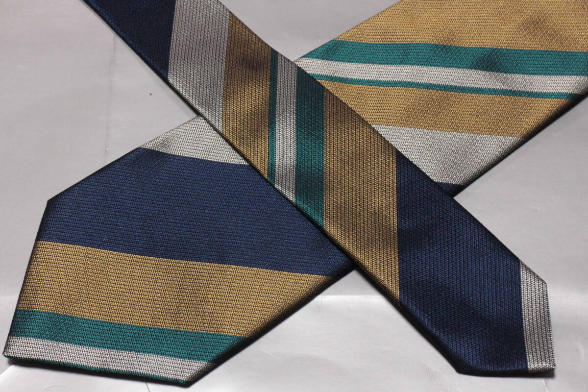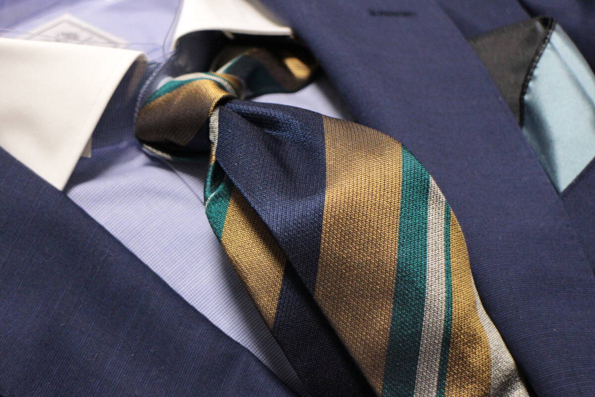 ポールスチュアート新品ネクタイ超華麗ネイビー*グリーン*ゴールド*シルバーレジメンタルマルチカラーボールドストライプハンドメイド
