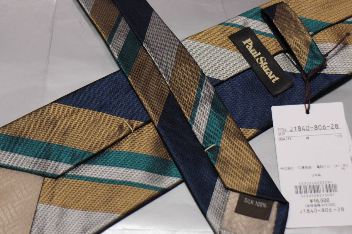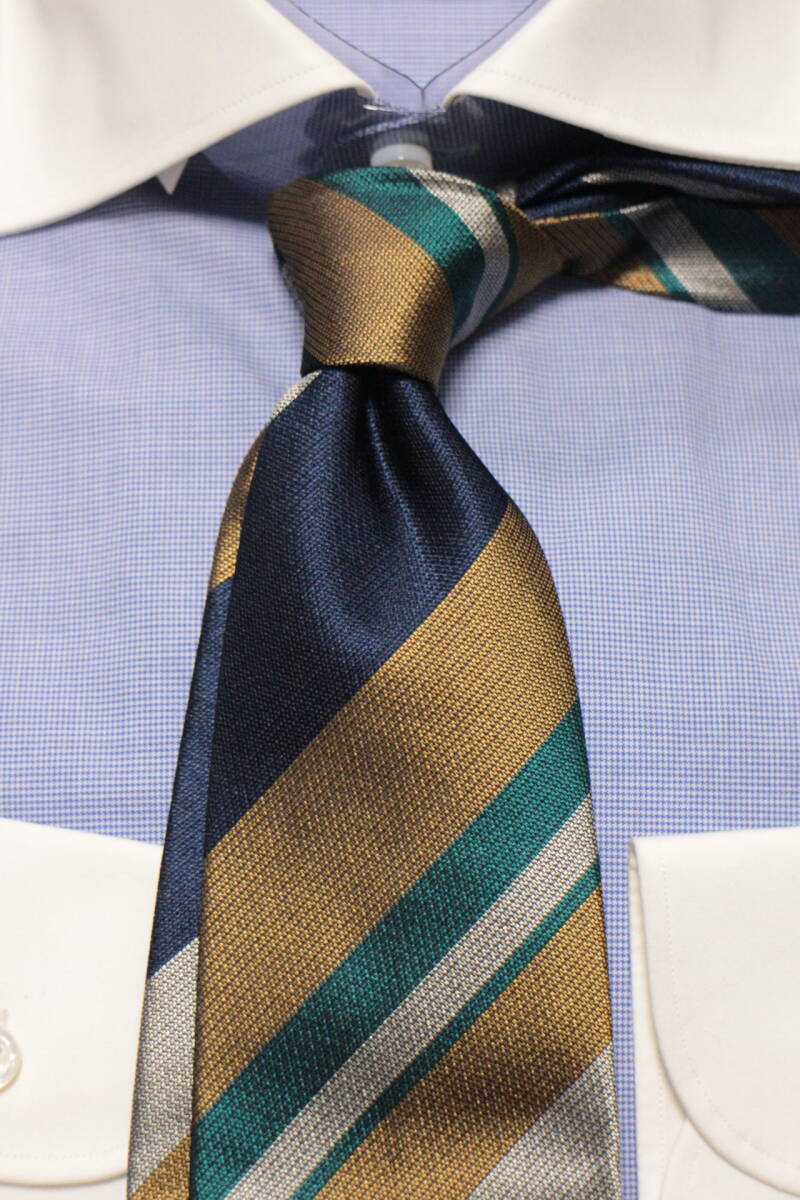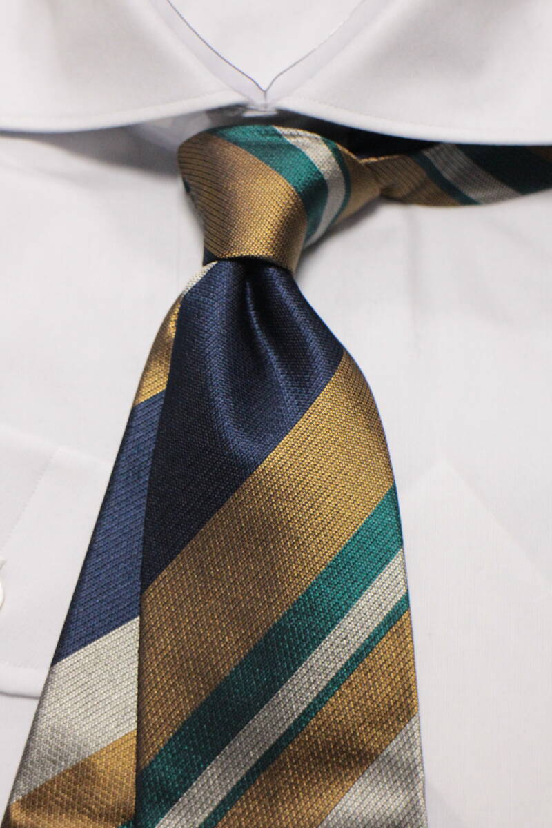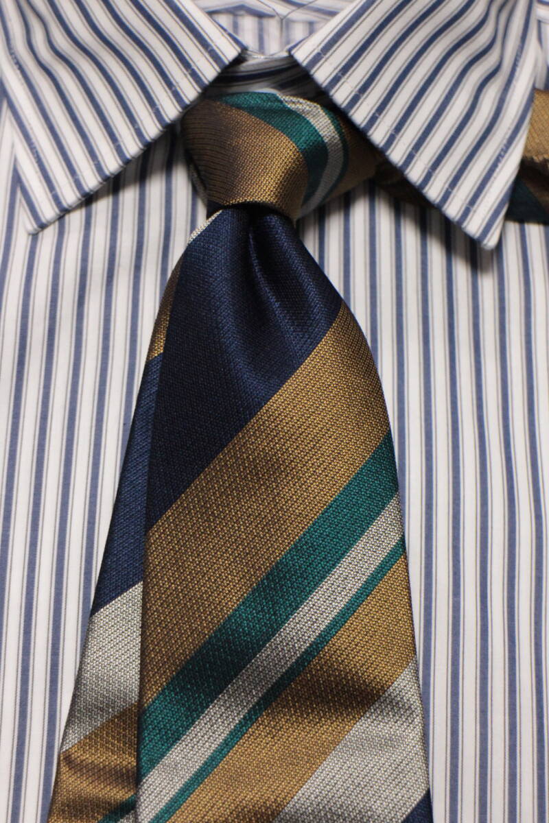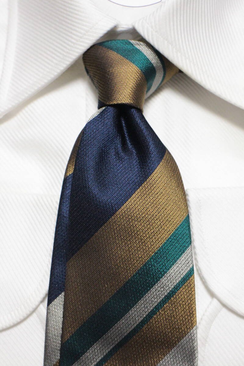 ポールスチュアート新品ネクタイ超華麗ネイビー*グリーン*ゴールド*シルバーレジメンタルマルチカラーボールドストライプハンドメイド