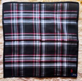 ●黒色を中心に赤色×白色のチェック柄が織り込まれた大判ハンカチです