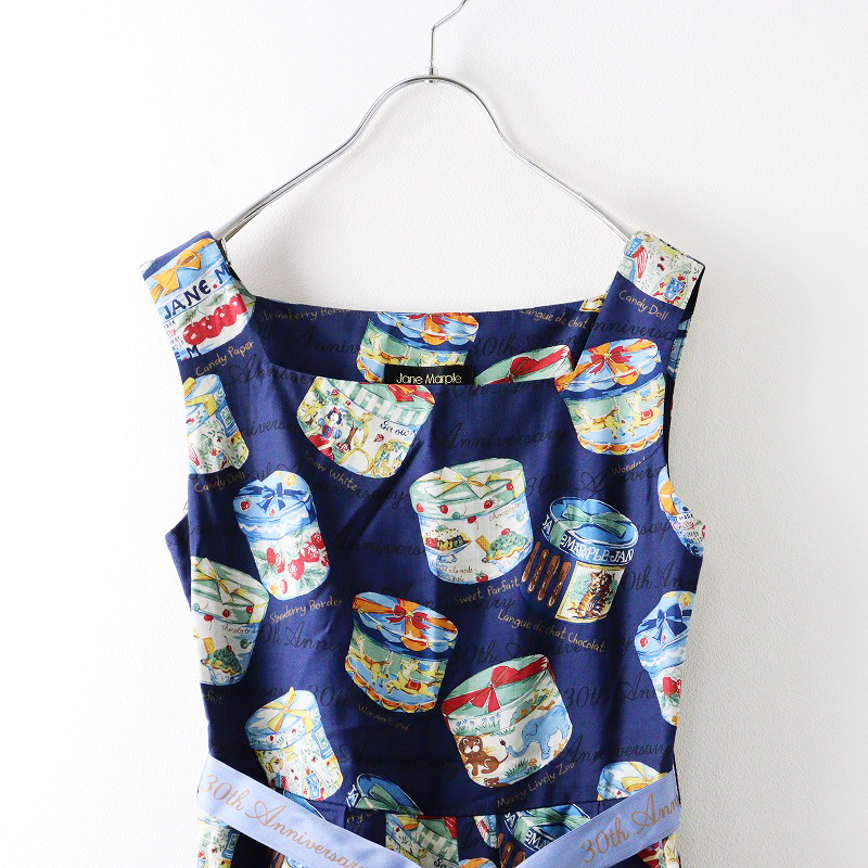 ジェーンマープル Jane Marple 30th Anniversary ハットボックス ノースリーブ ワンピース M/ネイビー リボン【2400014056488】