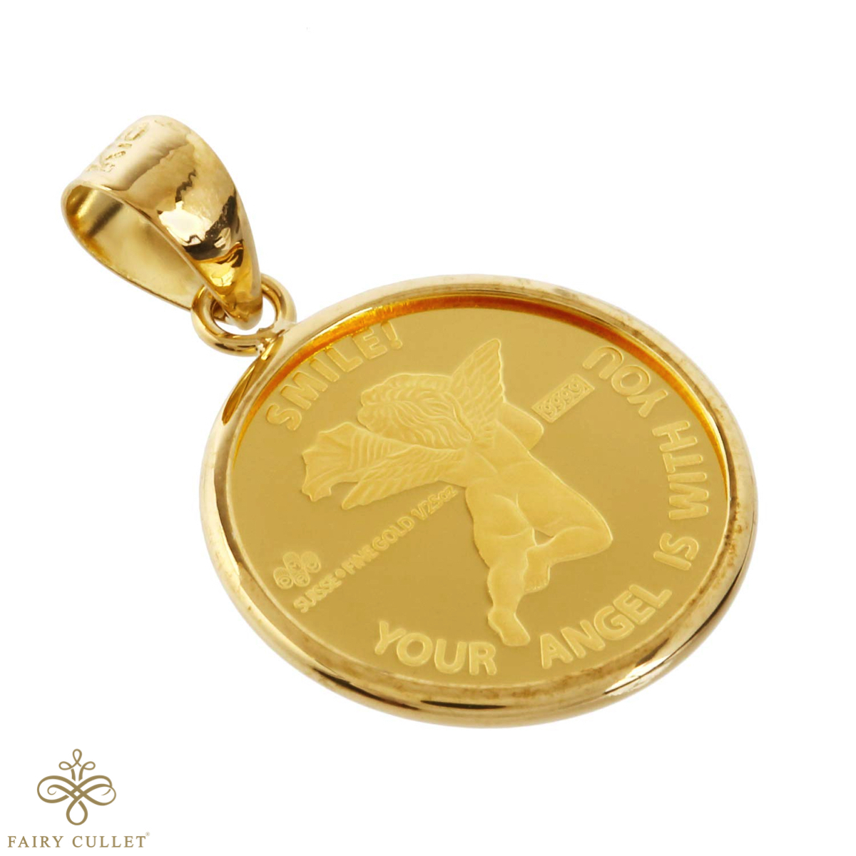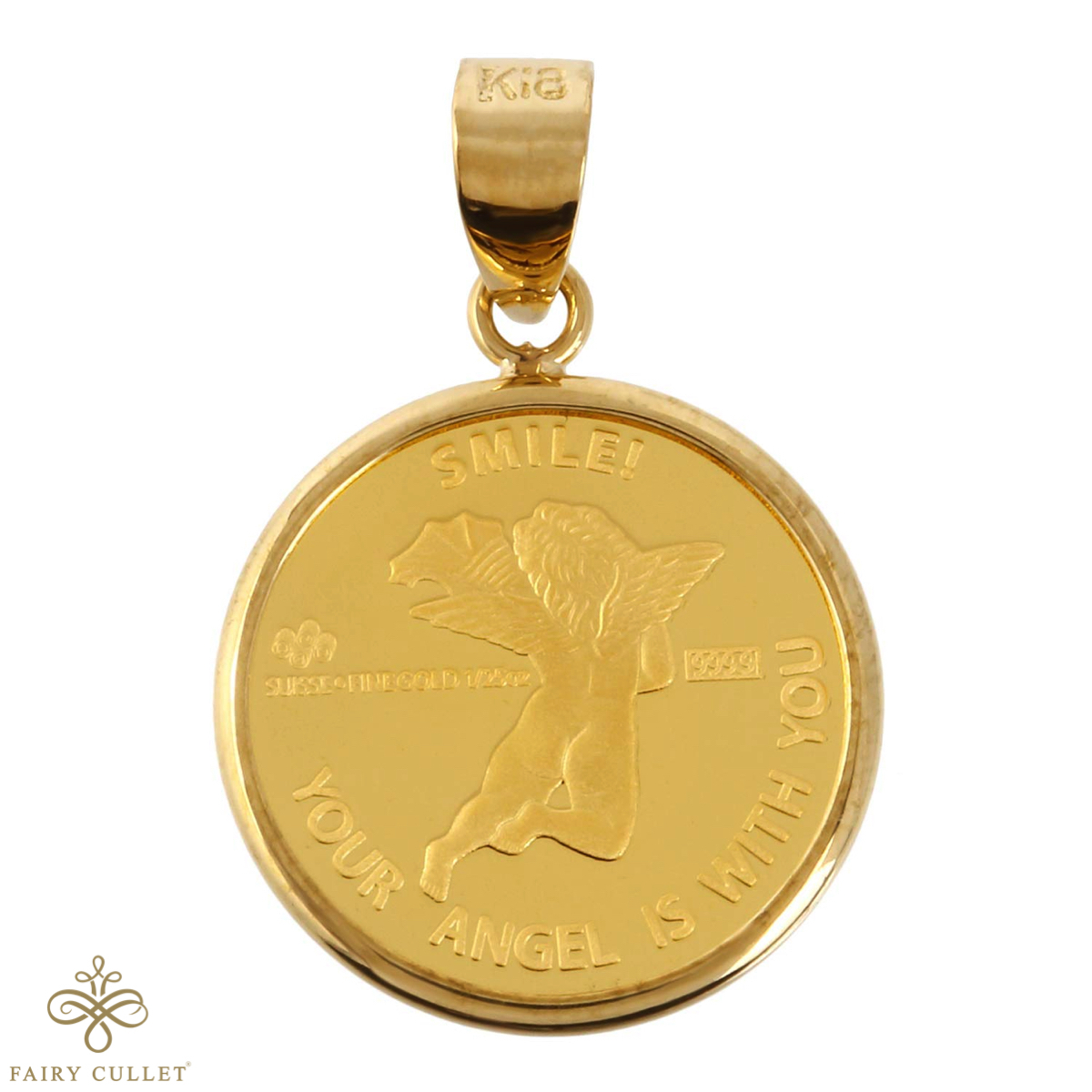 FAIRY CULLET(フェアリーカレット)スイスに本社を置く貴金属の大手企業PAMP社の純金コインに、日本製の18金フレーム枠を巻いたコインペンダントトップです。