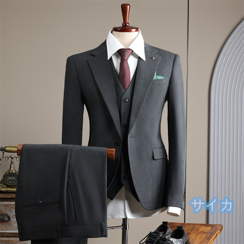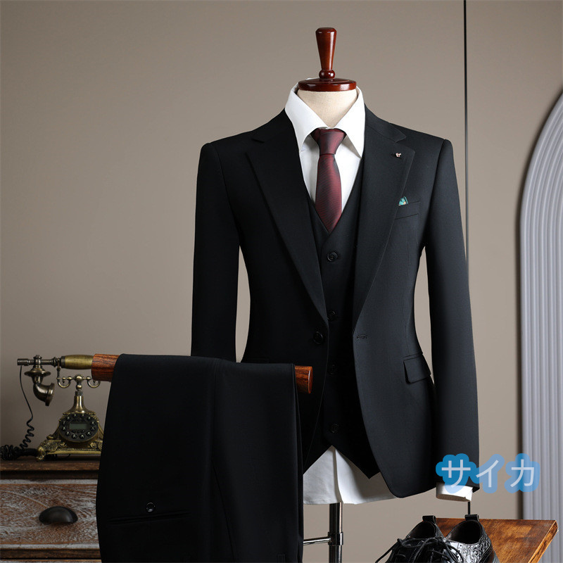 スーツ メンズ 3ピーススーツ セットアップ ビジネススーツ フォーマルスーツ 洗える 無地 紳士服二次会 成人式 通勤 S~4XL/24XF46