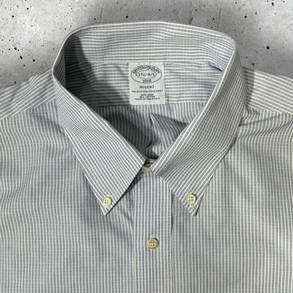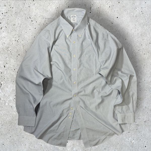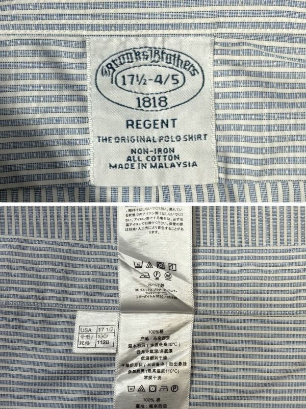 ★美品★NON-IRON★Brooks Brothers 長袖BDシャツ size17 1/4-4/5(L相当) スカイブルー系ストライプ柄 ブルックスブラザーズ 古着 クリーニング プレス済み USED 1720