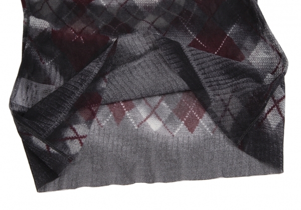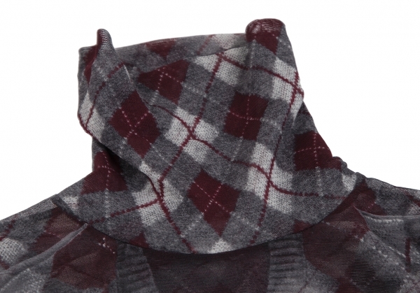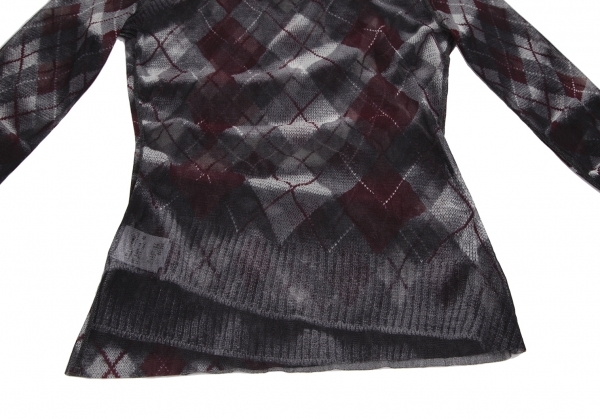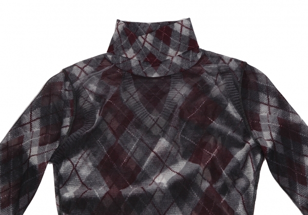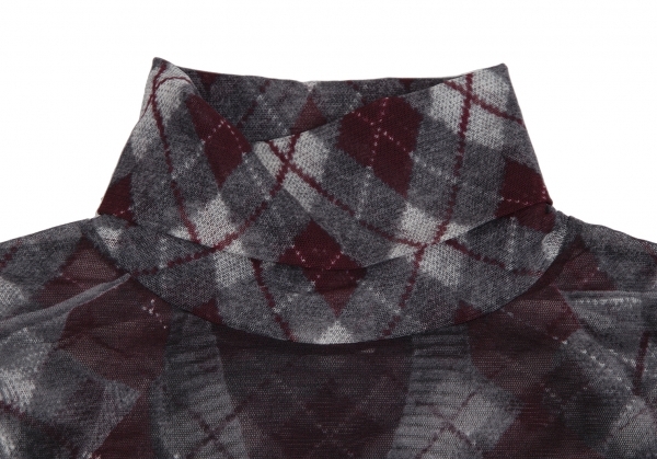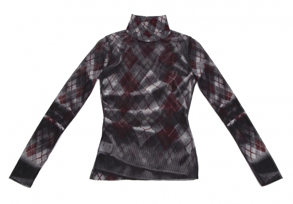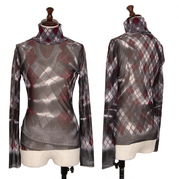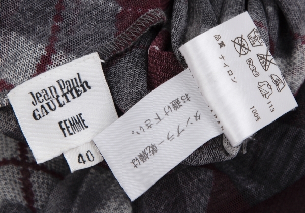 ジャンポールゴルチエ ファムJean Paul GAULTIER FEMME アーガイルニット転写タートルネックパワーネットカットソー グレー赤40 |