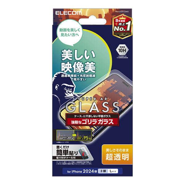 | 製品 | iPhone16 Pro Max用画面保護ガラスフィルム 動画映え・Gorillaガラス・超高透明タイプ |