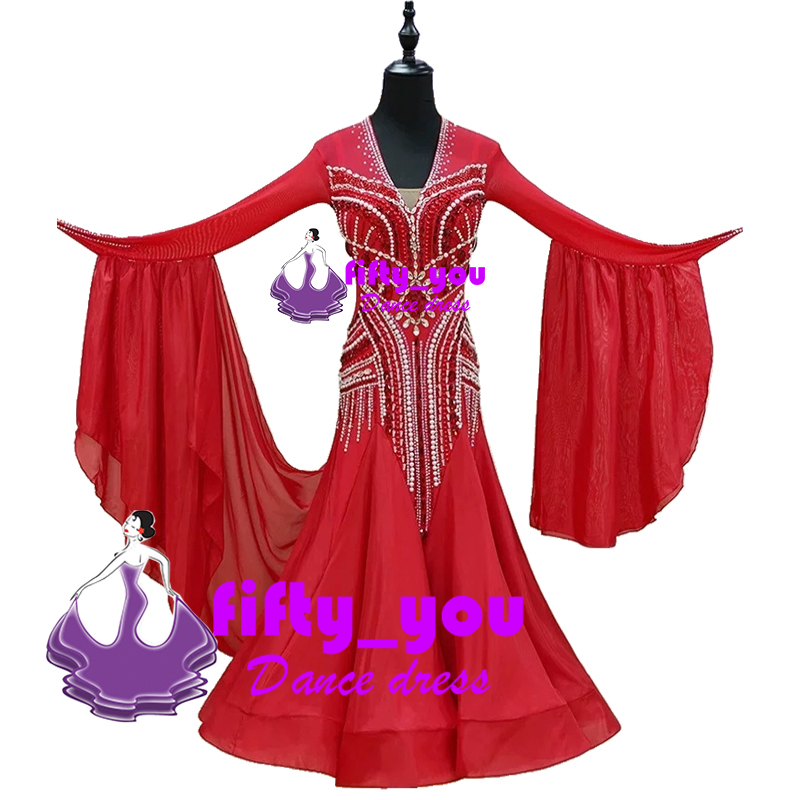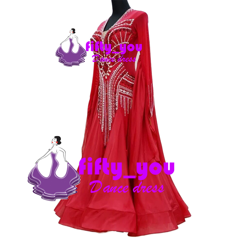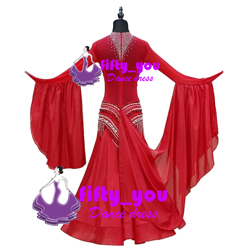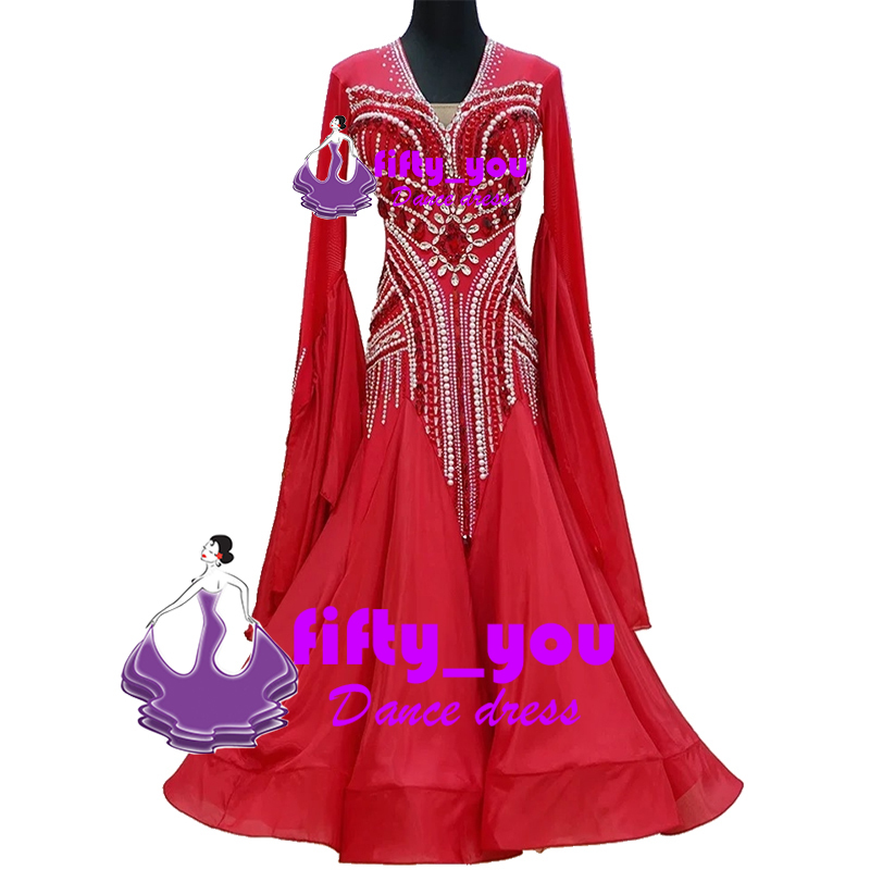 新品fifty_you レディース社交ダンスドレス サイズセミオーダー モダン競技ドレス スタンダードドレス ゴージャスストーン飾 赤色