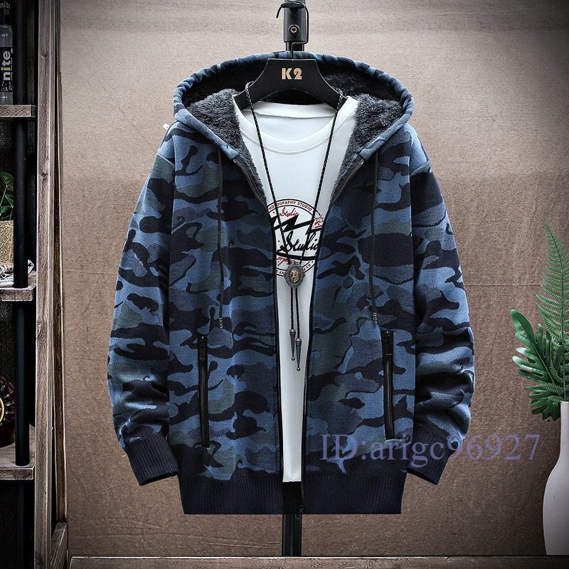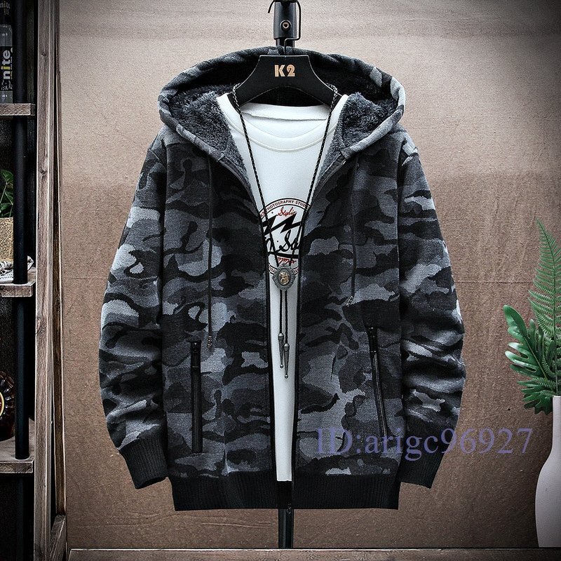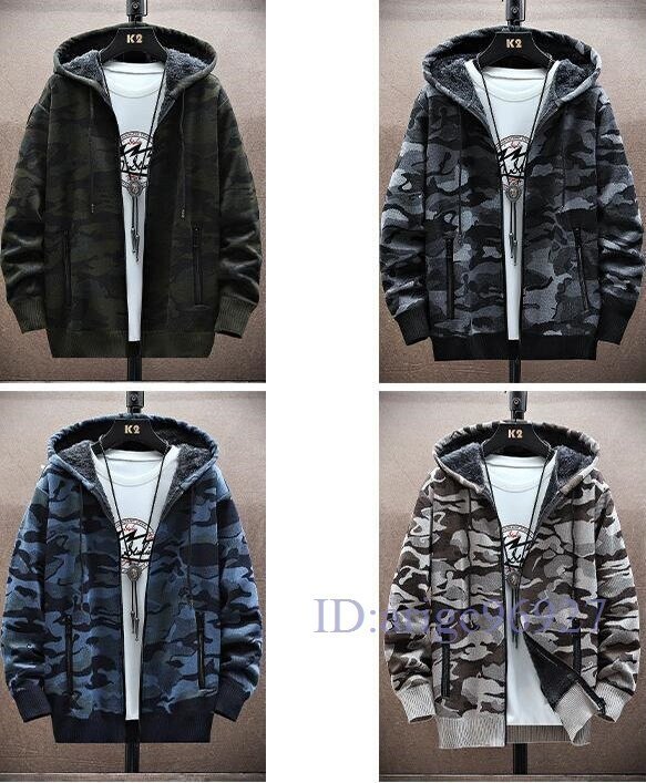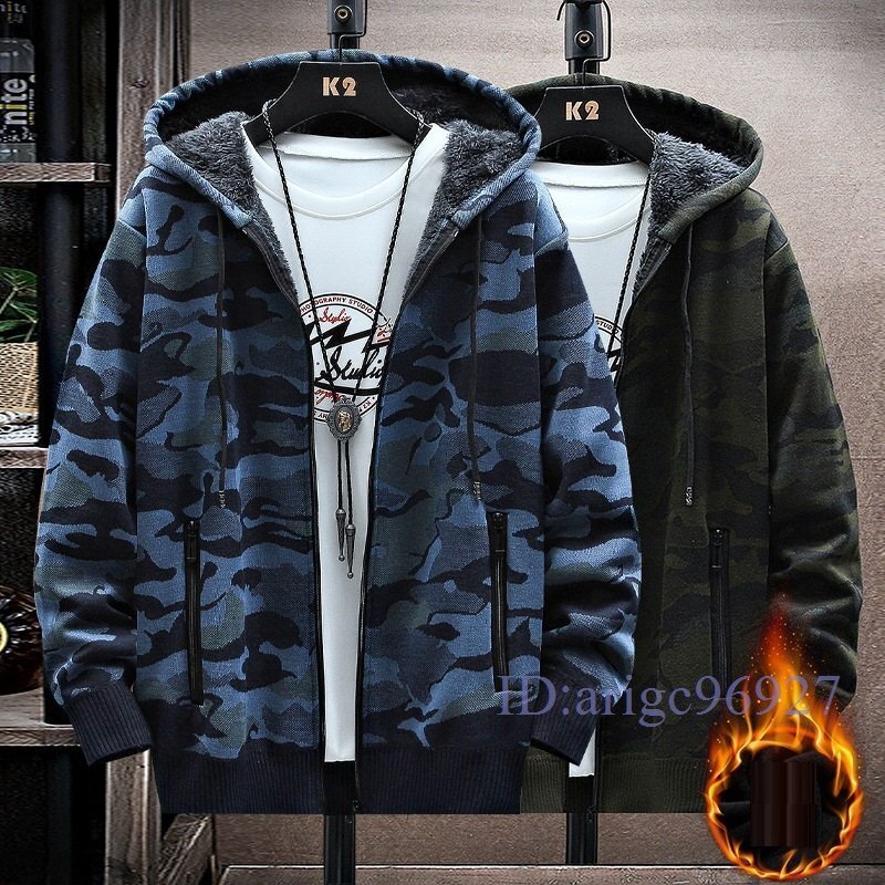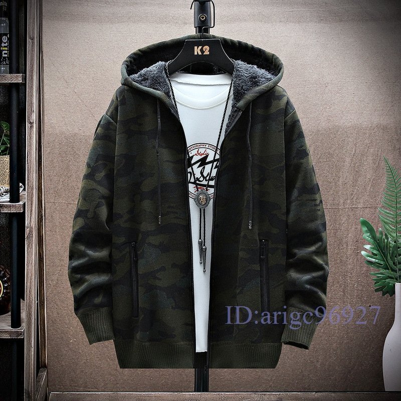 Y751☆新品裏ボア ショートコート メンズ迷彩柄 裏起毛 ジップアップパーカー厚手 カジュアルジャケット 秋服 冬服 アウタ グリーン M~3XL