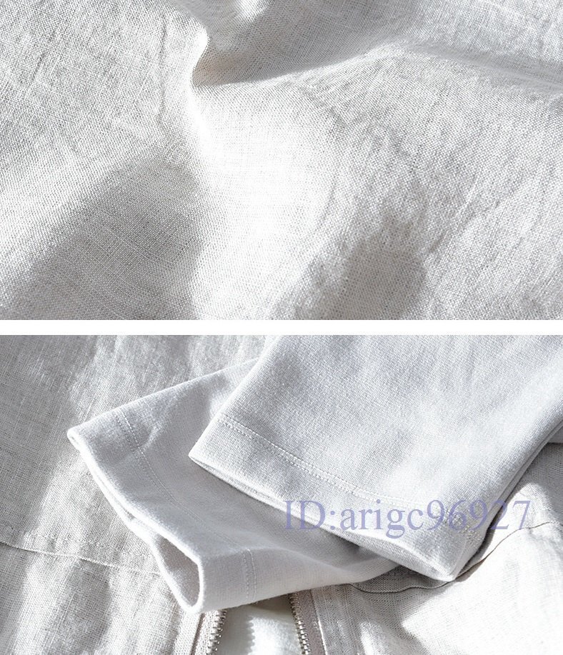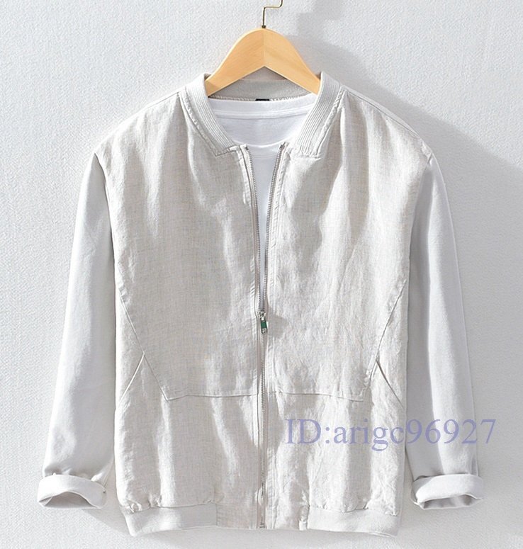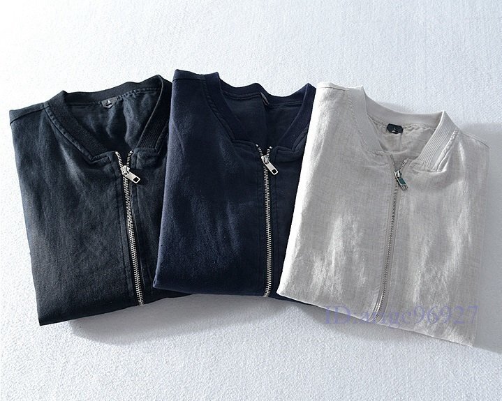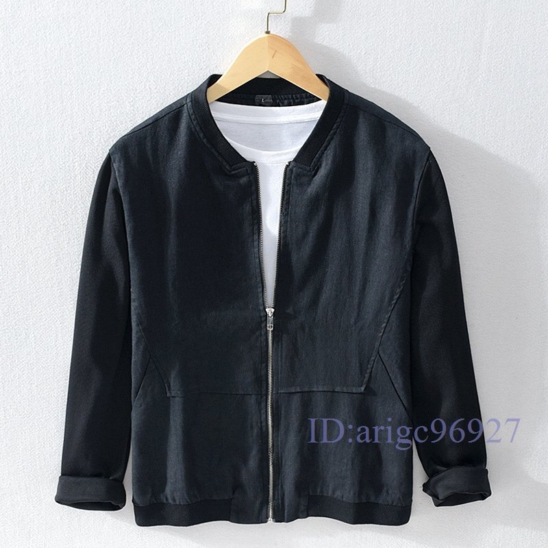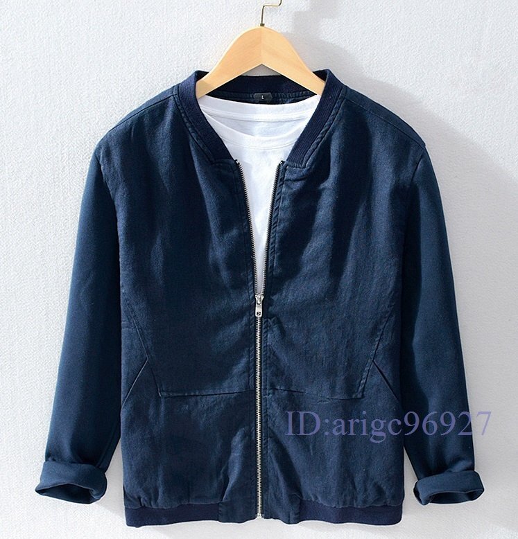 R151☆新品超レア 春夏 ジャケット リネン混 ジャンパー 立襟 アウター 麻 紳士服 サマー 清涼感 コート デザイナーズ 無地 三色 カーキ