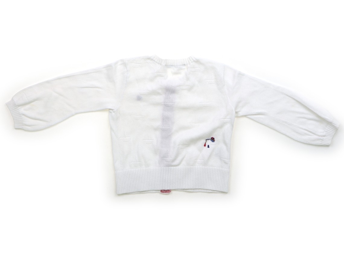 前身頃、両袖に薄いですが、茶色いシミが複数あります。左の二の腕に黒い汚れあり。全体的にやや型崩れあり。外遊びや洗い替え用にいかがでしょうか?