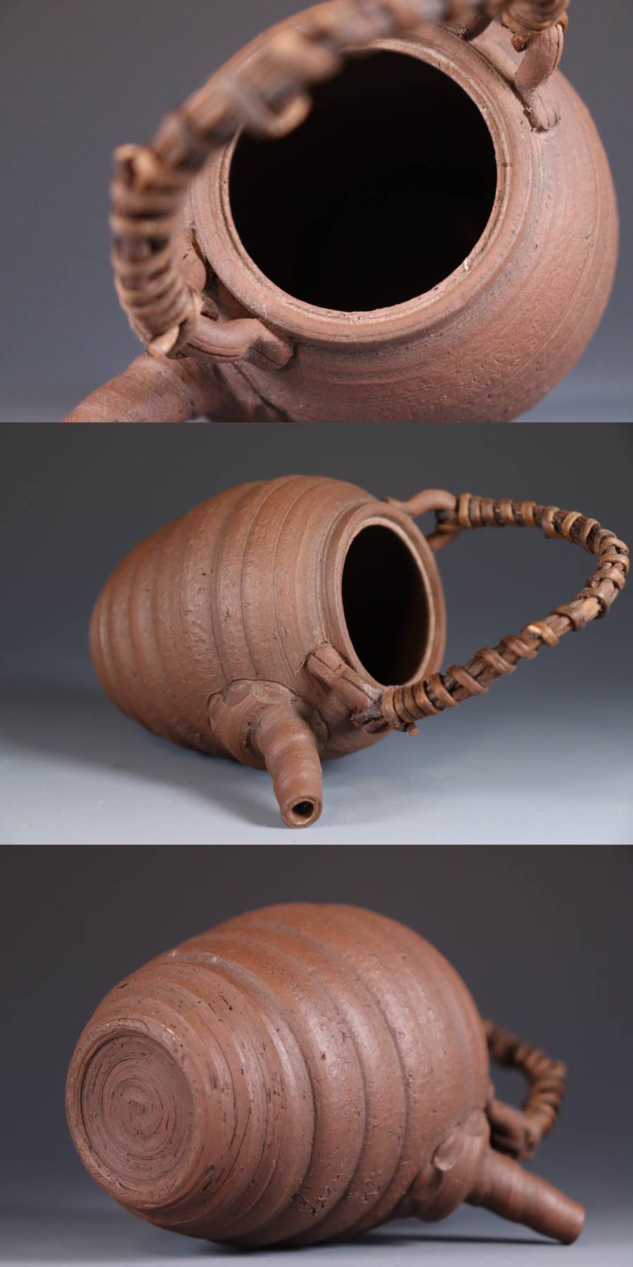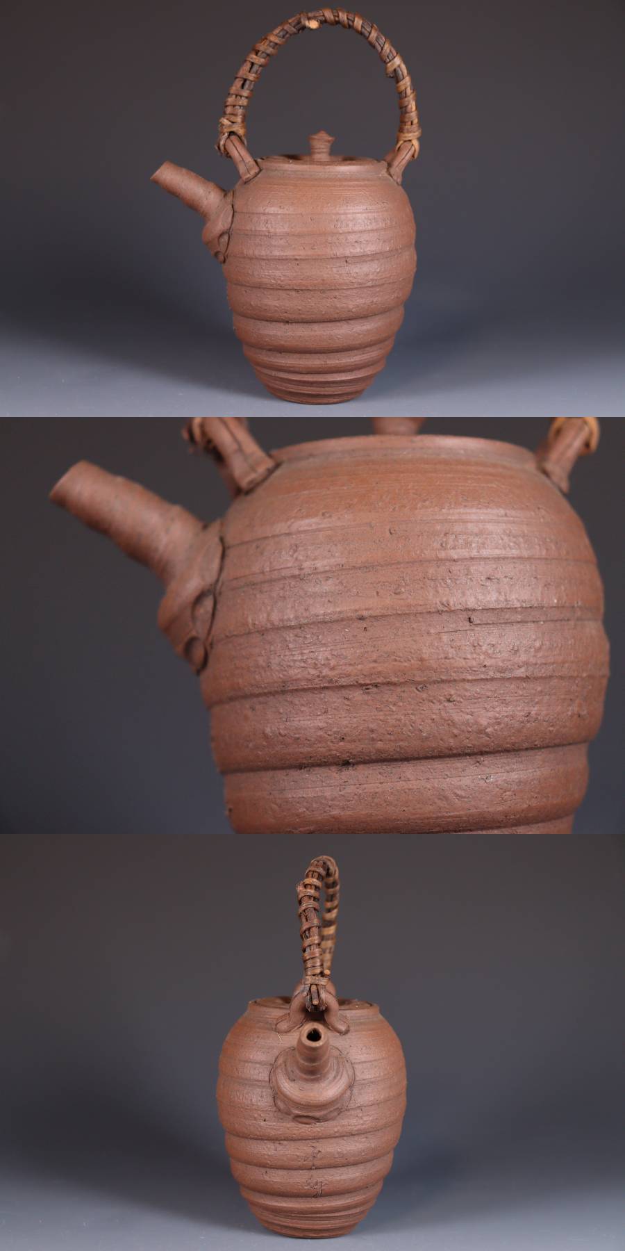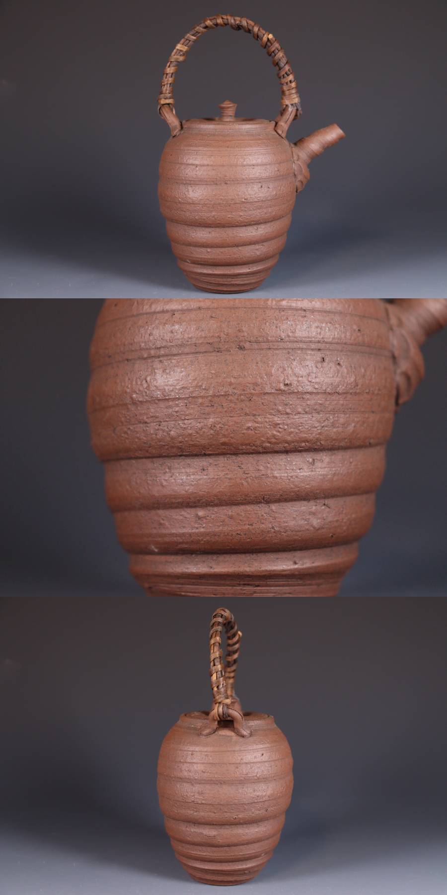 | 商品説明 | 商品名:蔵出し品 作家造 南蛮手 急須 煎茶道具 付属品:なし。 サイズ:高さ16cm、口径5,5cm、高台4cm。 状態:蓋に直しがございます。 |