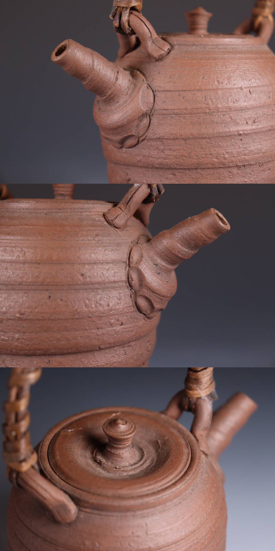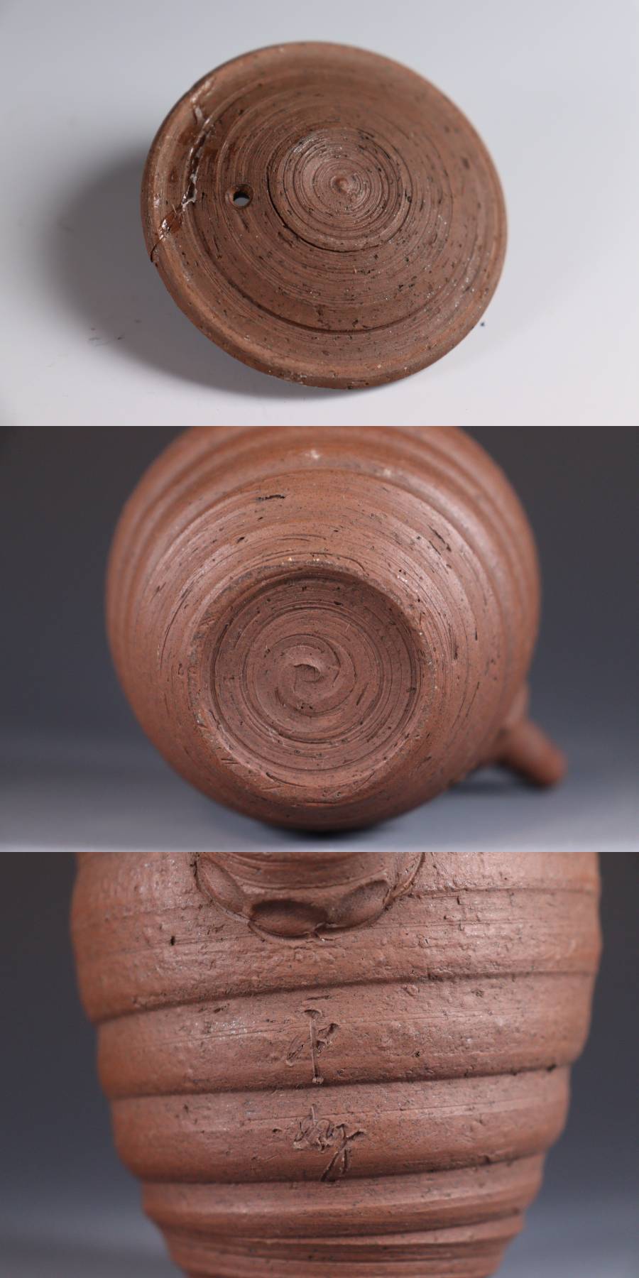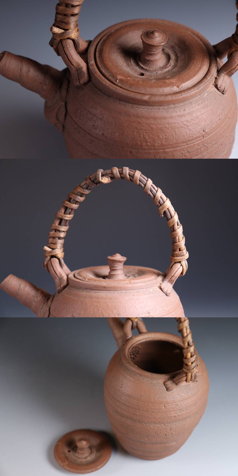 | 商品説明 | 商品名:蔵出し品 作家造 南蛮手 急須 煎茶道具 付属品:なし。 サイズ:高さ16cm、口径5,5cm、高台4cm。 状態:蓋に直しがございます。 |