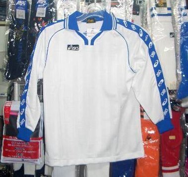 アシックス XF3001長袖ゲームシャツ 白×青 ホワイト×ブルー 160cm ジュニア キッズ 子供 asics 新品 レトロ /