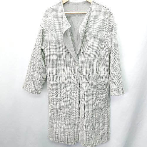 ◇ nano universe ナノ ユニバース チェック柄 長袖 コート サイズF グレー ホワイト レディース E