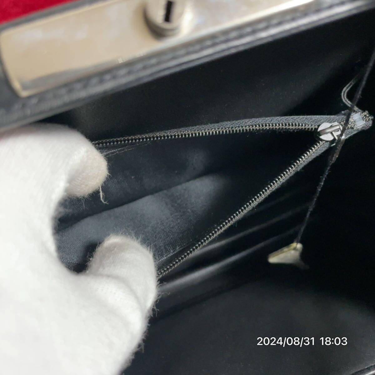 内部様式:ポケット3ヶ所 ジップポケット1ヶ所 付属 がま口財布 ミラー