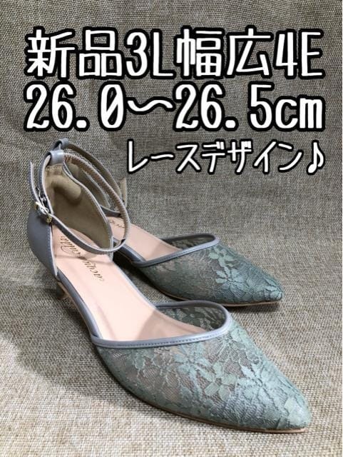 新品☆3L26~26.5cm幅広4E♪くすみカラー♪すけ感レースきれいめパンプス☆p456