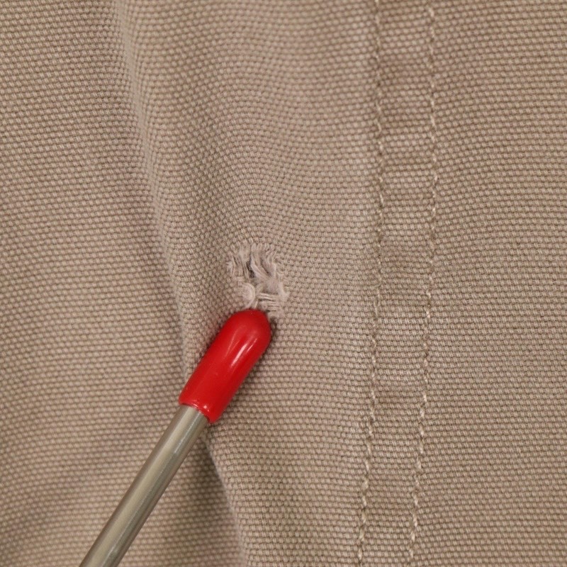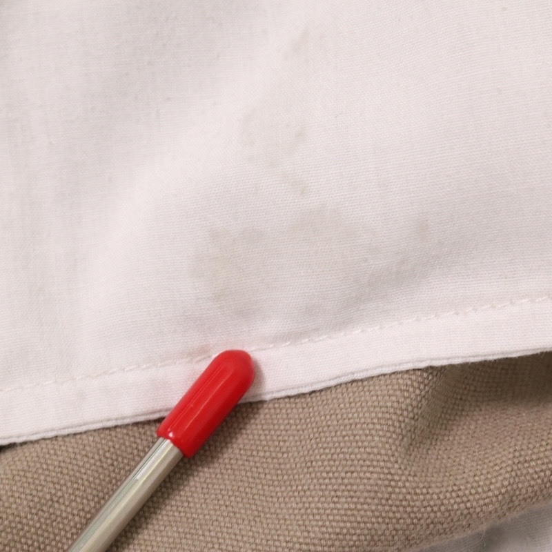 正面に極わずかな小さな穴、所々に極わずかな色あせ、内側に極わずかな薄い汚れがございます。着用に問題はございません。