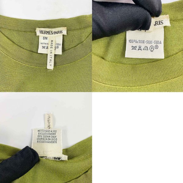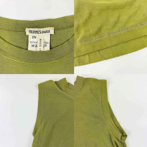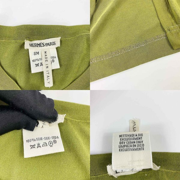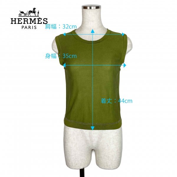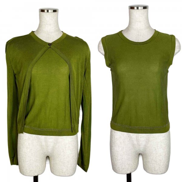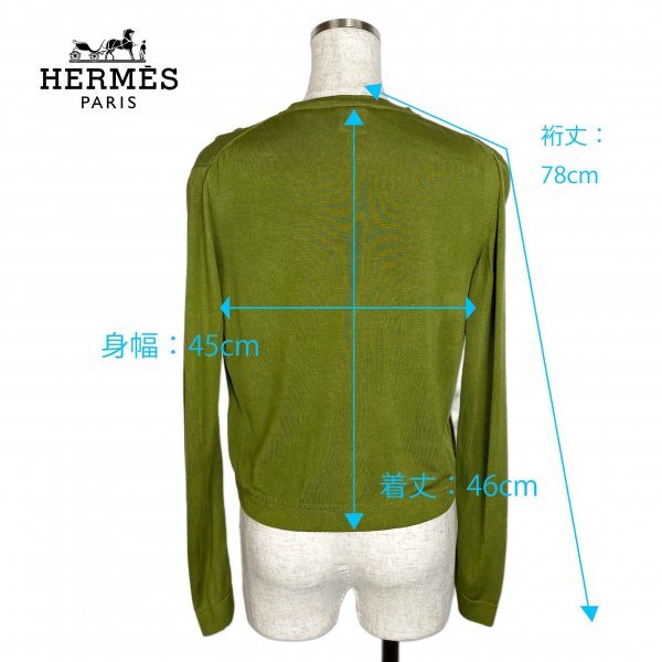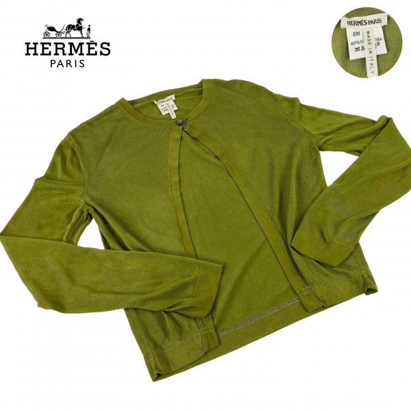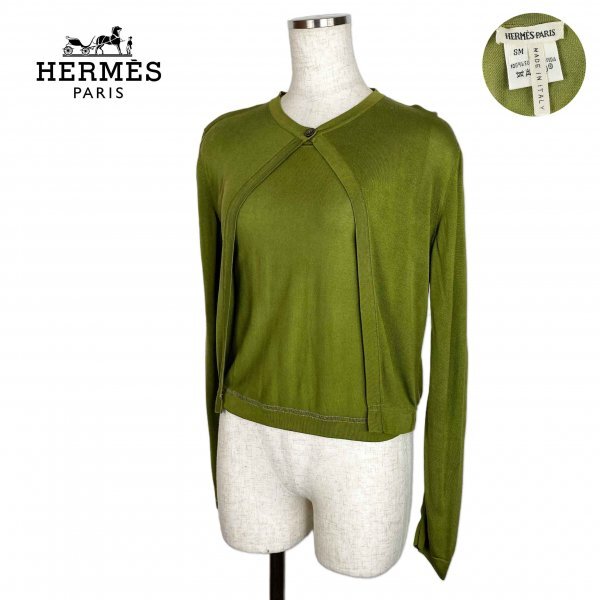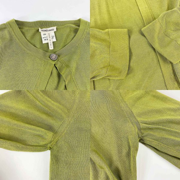 ★高級生地★ HERMES エルメス マルジェラ期 シルク100% アンサンブル カーディガン ノースリーブ トップス オリーブグリーン SMサイズ イタリア製 クリーニング済み