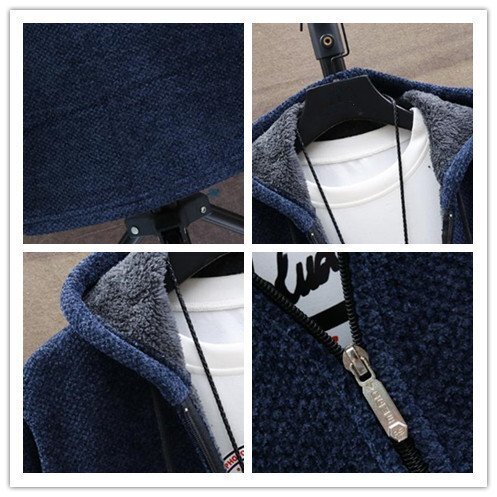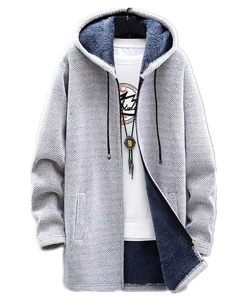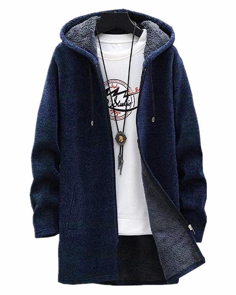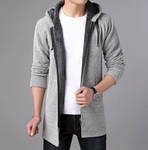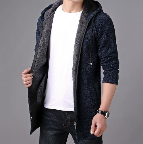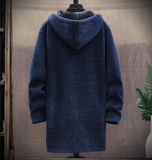 LRM4668★メンズ ニットアウター 裏起毛 コート ゆったり ロング丈 厚手 防寒 フード付き ジャケット カーディガン