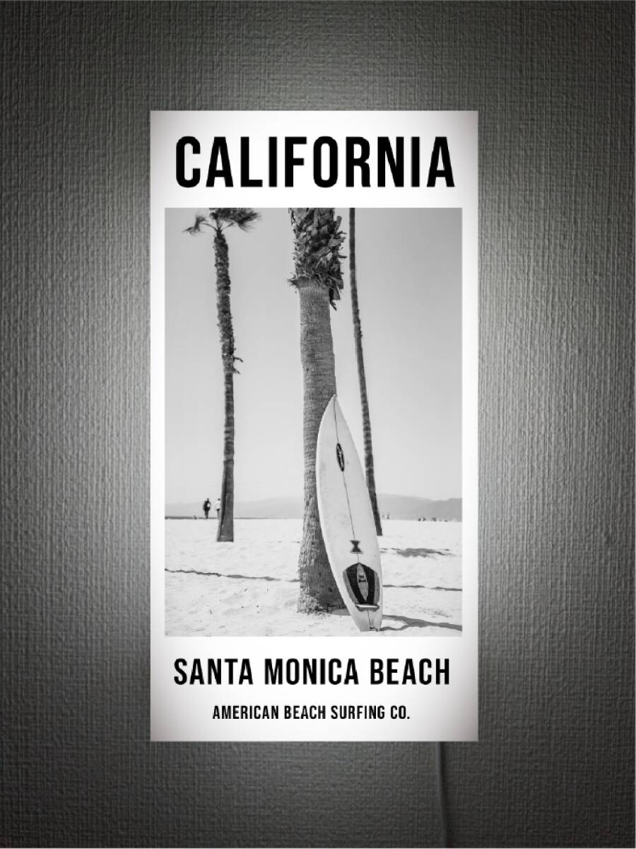 ★画鋲で壁に簡単設置★置物としても◎★ 店舗、自宅、ガレージ、オフィスの窓際・カウンター・棚・テーブルやちょっとしたスペース、車内・キッチンカー・屋台・イベント・パーティーなどに 【カリフォルニア サーフィン ビーチ モノクロ写真】電飾看板Lサイズです★ オーダー無料、プレゼントにも大変好評頂いております★ ◆サイズ◆20センチ×40センチ×奥行き7センチ ◆材質◆本体(アクリルプラスチック製)・表示面(IJバックライト発光フィルム貼り) ◆電源◆USB供給電源(家庭用コンセントコネクタ付き) 〇他サイズ〇 ●Mサイズ 150mm×300mm ●LLサイズ 300mm×600mm ●3Lサイズ 400mm×800mm ●4Lサイズ 500mm×1000mm ◆オリジナルデザイン・オーダーも承っておりますので、お気軽にお問い合わせください。 自社製造製品 店舗 自宅 キッチンカー フードトラック 屋台 パーティー イベント サイン ランプ ライト 照明 看板 インテリア雑貨 置物 雑貨 テーブル カウンター 電飾看板 電光看板