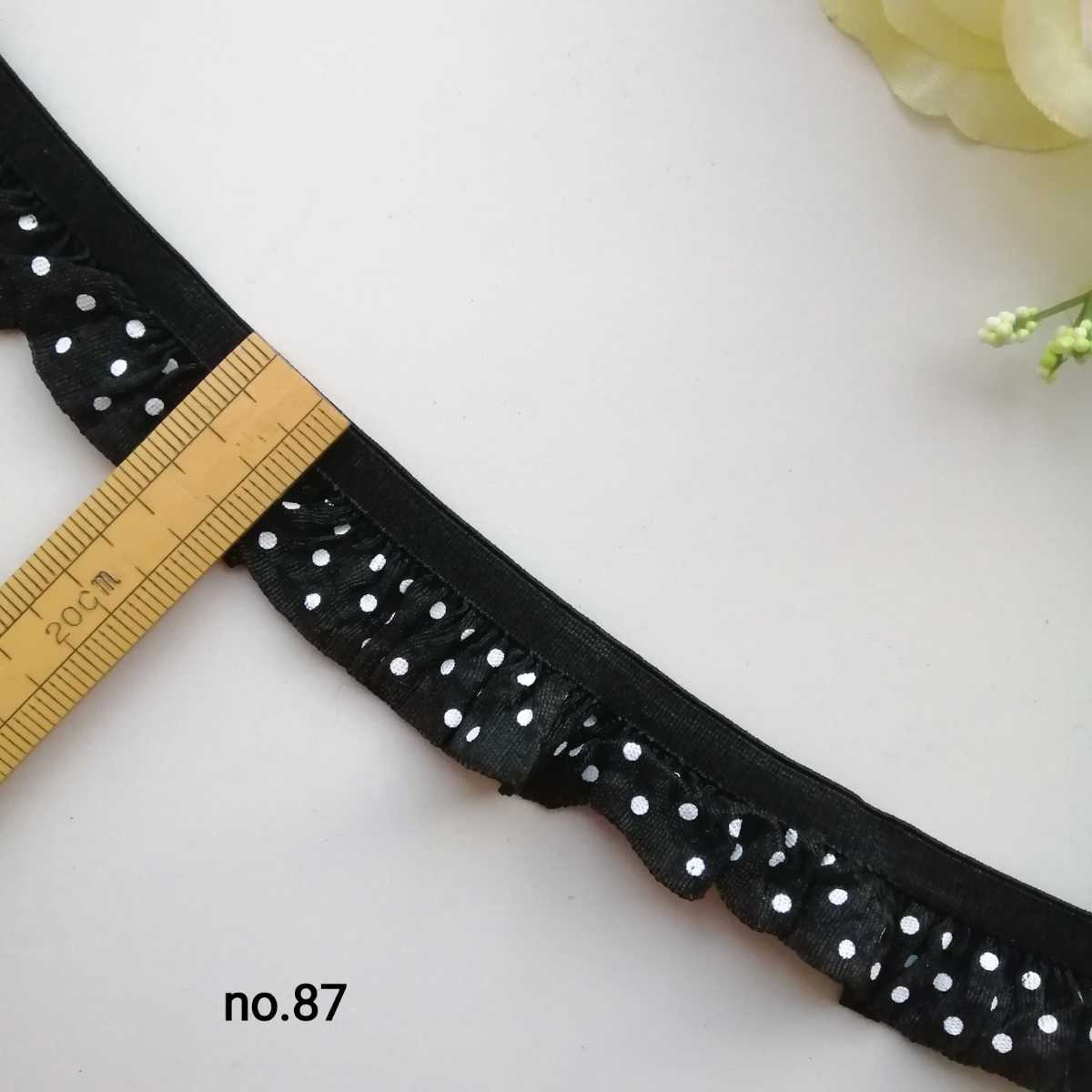 no.87 黒 水玉 フリル ストレッチ レース
