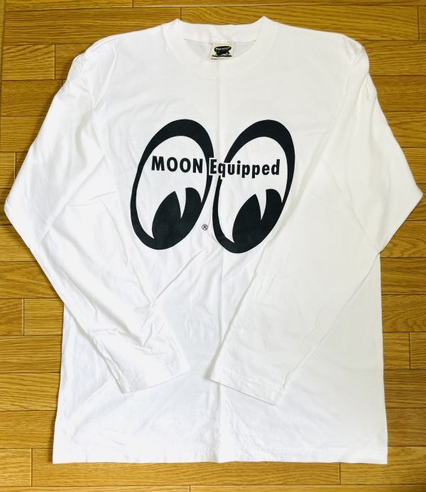 【激レア/新品未使用】MOONEYES ムーンアイズ アイボールロゴロングTシャツ ホワイト Lサイズ  MOON Equipped YOKOHAMA HONMOKU