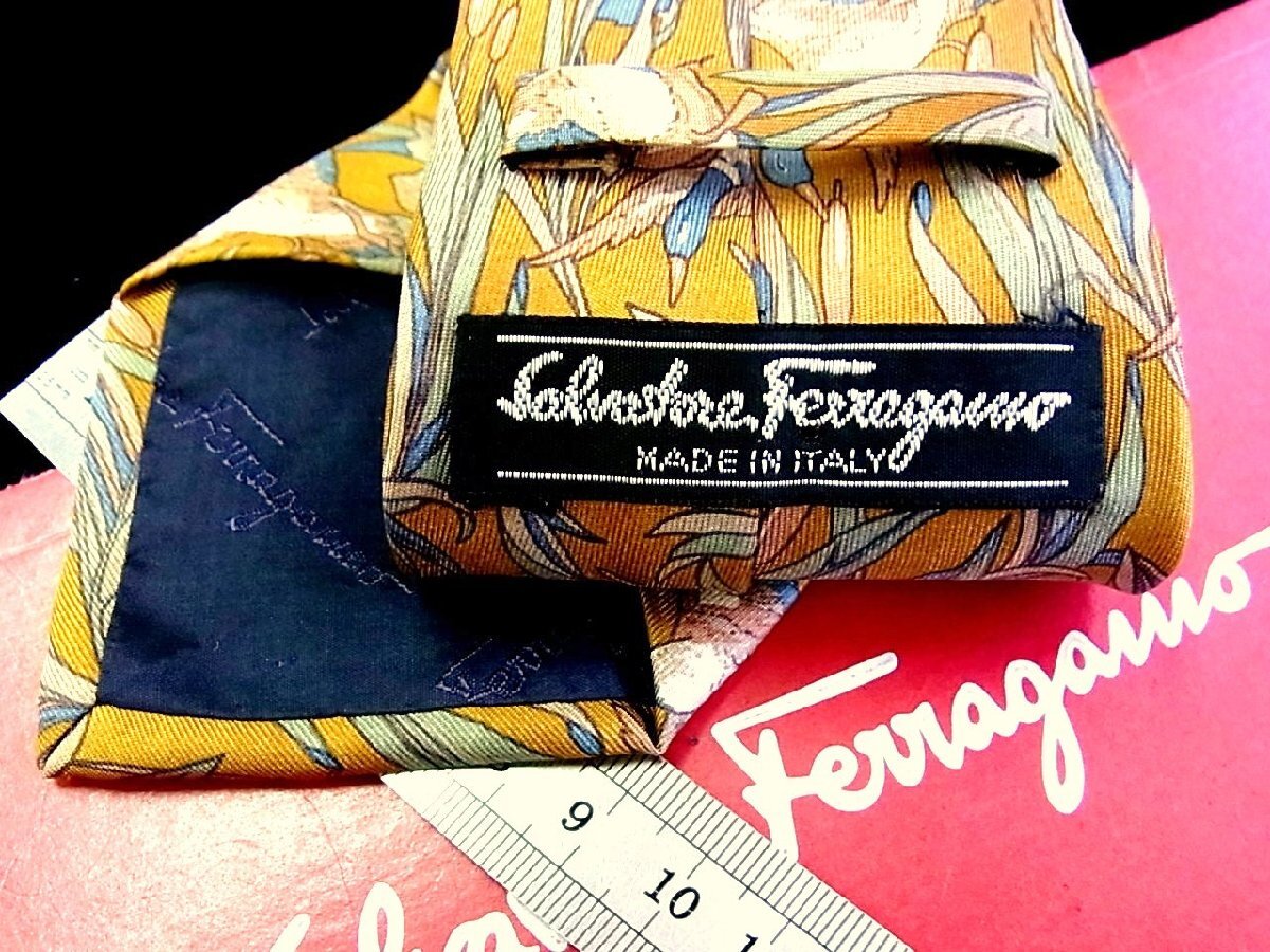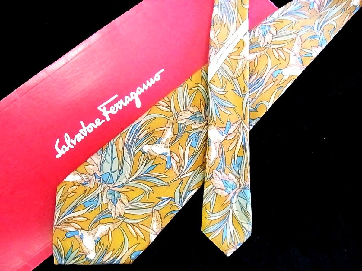 ♪今週の特売980円~♪1920♪状態並品【Ferragamo】フェラガモ【鳥 鴨 カモ 葉っぱ 植物 柄】