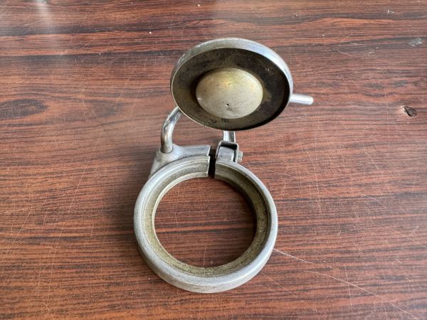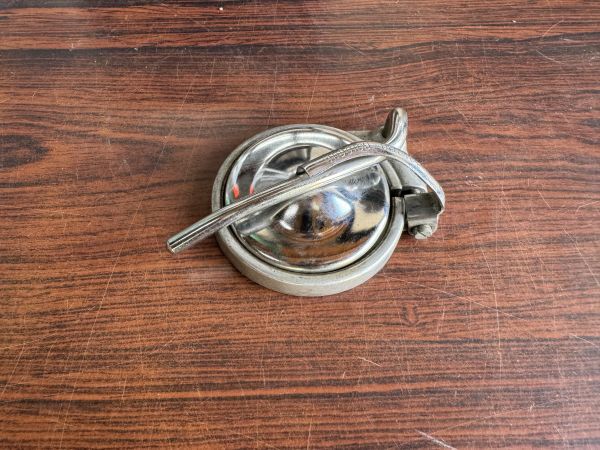 イタリア製のタンクキャップ 1950年代頃の品物になります。タンクキャップのフランジ外径50mmのものに取り付け可能です。 蓋のゴム等状態からも新品の未使用品かと思います。イタリア車ならではのデザインと機構の一品です。 |