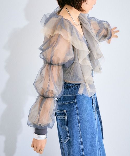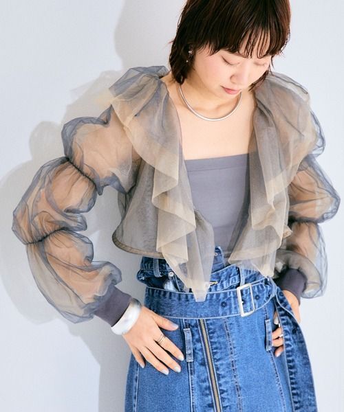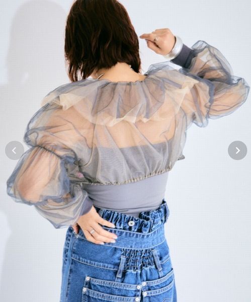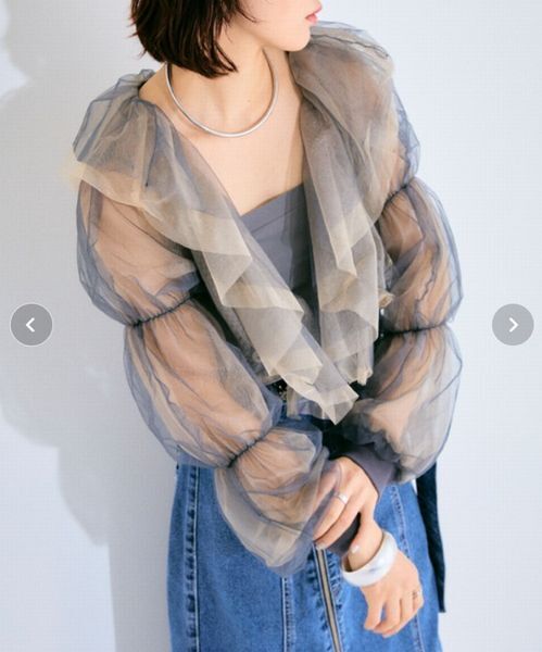 【ELLEgirl/エル ガール】バルーンスリーブラッフルボレロ 色違いの2色のチュールを重ねて、シアー感たっぷりに作られた女心をくすぐるボレロです。 お袖のくしゅくしゅギャザーもかわいいです。 華やかなので、ドレスやワンピースの羽織り物として、フォーマルなお呼ばれの席にもおすすめです。 ブランド商品説明… Fabric 2色のチュールを重ねた透け感のある華やかな1枚。 チャコールグレー(グレー×ベージュ) 他にはない配色と絶妙なボリューム感が魅力。 チュールの持つ女性らしい甘さがコーディネートのポイントになるアイテムです。 Style ワンピやキャミソール・Tシャツなどの上から羽織るだけでトレンドライクなコーディネートに。 デニムボトムと合わせると周りと差のつく甘めカジュアルコーデが完成。 クロップド丈と長めのバルーンスリーブでバランスもとりやすく、お手持ちのアイテムと合わせやすいのも嬉しい。 ご質問はお気軽にどうぞ。 ◆カラー:チャコールグレー(チャコールグレー×ベージュ) ◆サイズ フリーサイズ (ブランドによりサイズ感が異なりますので、実寸を参考になさってください。) ◆平置実寸(約):着丈31.5、ゆき87cm ◆素材: ナイロン100% ◆定価7,700円(本体7,000円+消費税) |