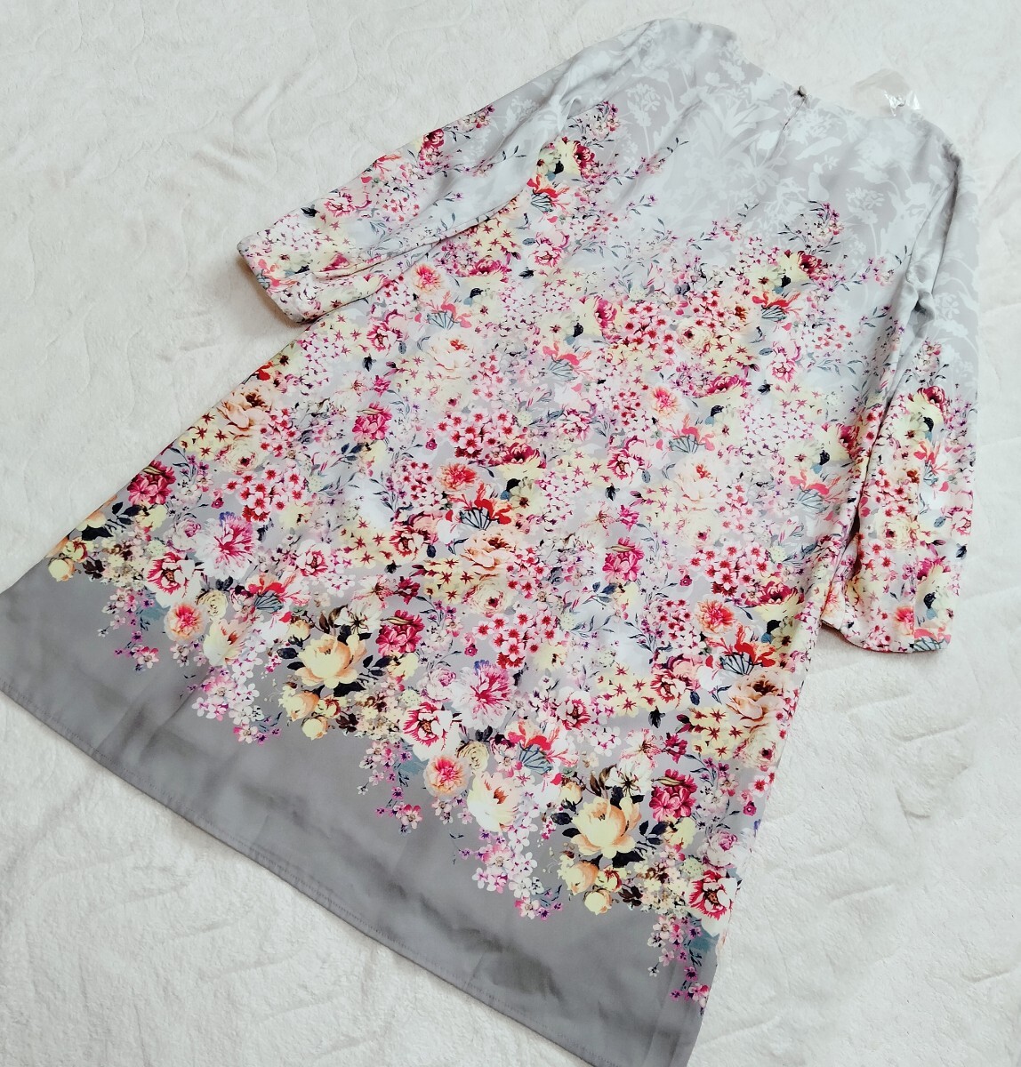 未使用* Otto Collection/オットーコレクション*花柄ワンピース*M*長袖*膝下丈*手洗いできます*華やか*総柄