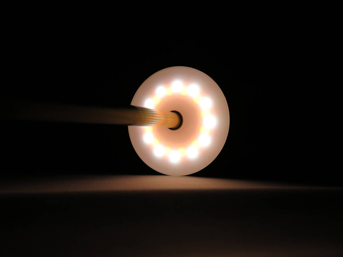 ワンタッチで4段階の調光が可能。照明の上部に触れるだけで明るさを自在に調整することができます。ワンタッチで明かりの変幻は自由自在。あたたかい電球色から、さわやかな昼光色まで、シーンにあわせて色を調整できます。