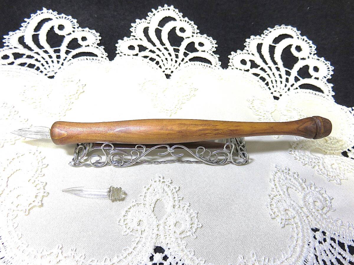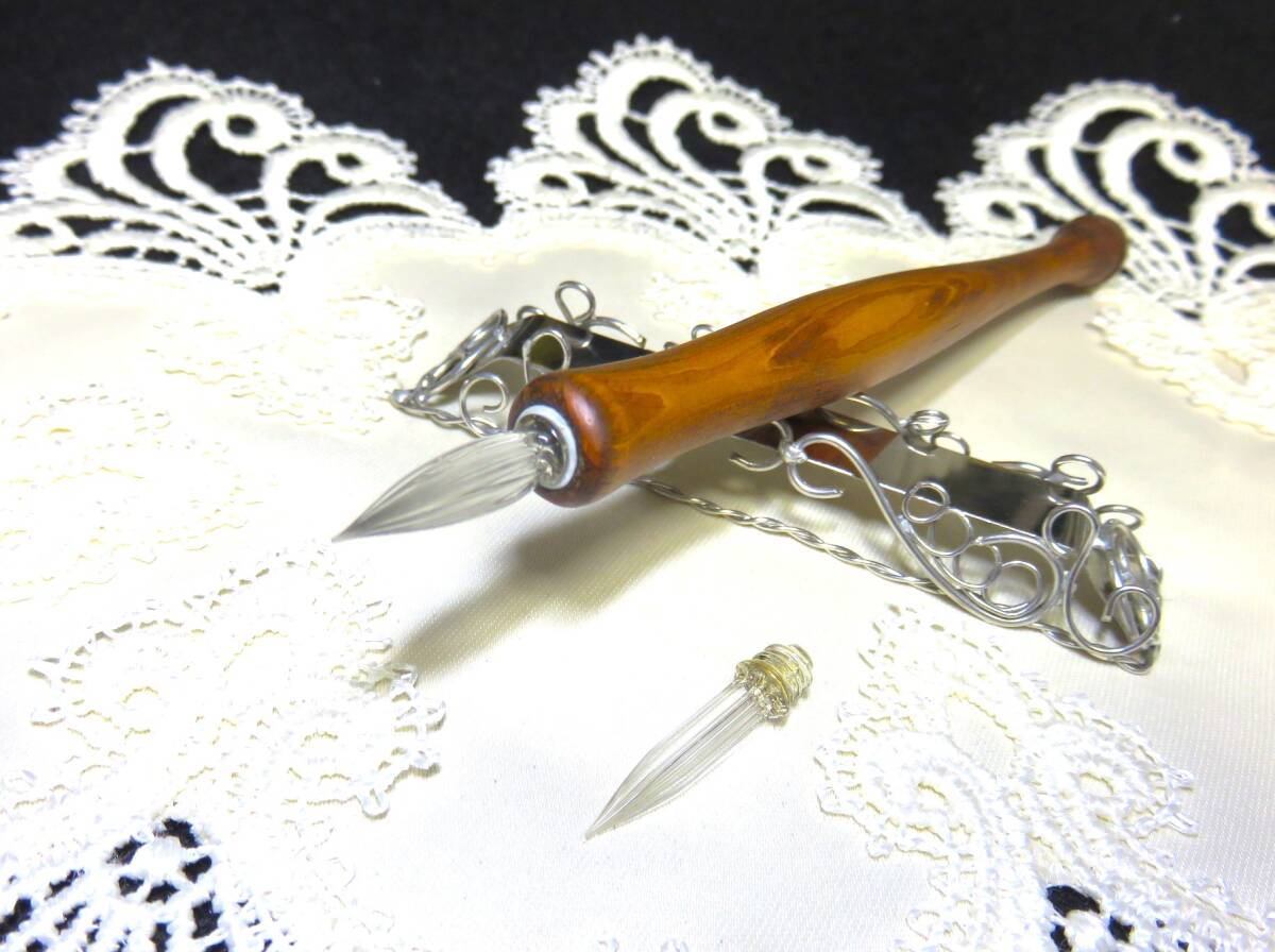 付属のササ型のガラスペンは昭和を代表するミツカンガラスの製造で極細です