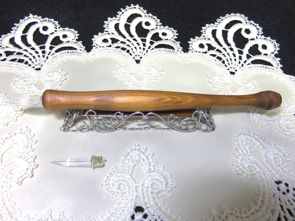 ウッドガラスペン 米ヒバ削り出しWAX仕上 ネジ式ペン先交換可 塔 オーク色 ミツカンガラスペン(ササ1本)トート(カブラ1本)