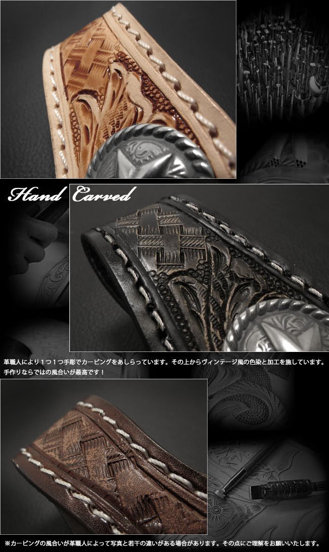 コンチョ部分はホック/スナップ式で他のコンチョに取替え可能です。 選択画像よりお好きな番号をお選びください。ご指定のない場合は7番をお付けします。