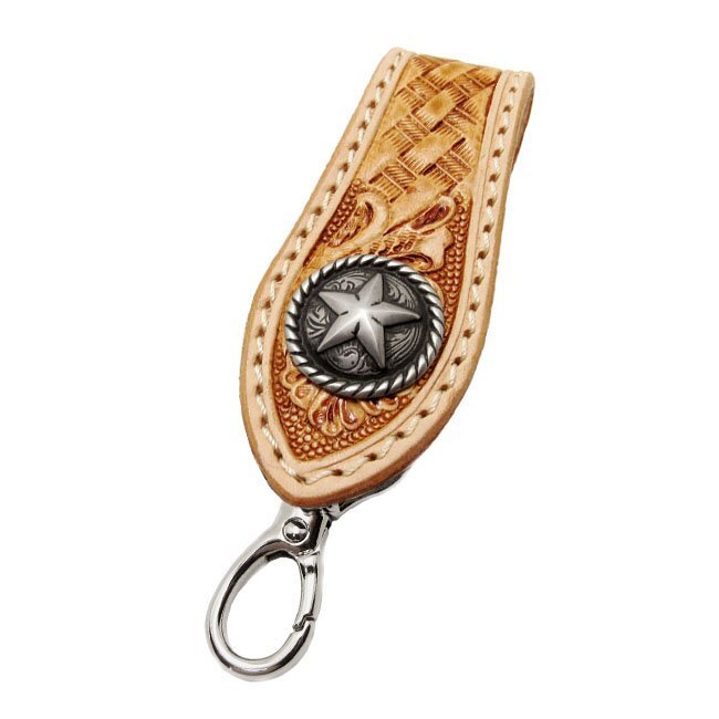 カービングレザー ベルトループ キーホルダー ナチュラル レバーナスカン 本革 コンチョ付き ハンドメイド 手彫りレザー キーチェーン