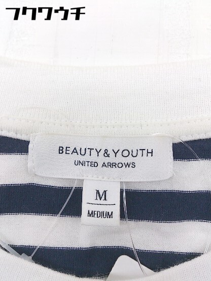 ◇ BEAUTY & YOUTH ボーダー スタンドカラー 半袖 Tシャツ カットソー サイズ M ホワイト ネイビー メンズ