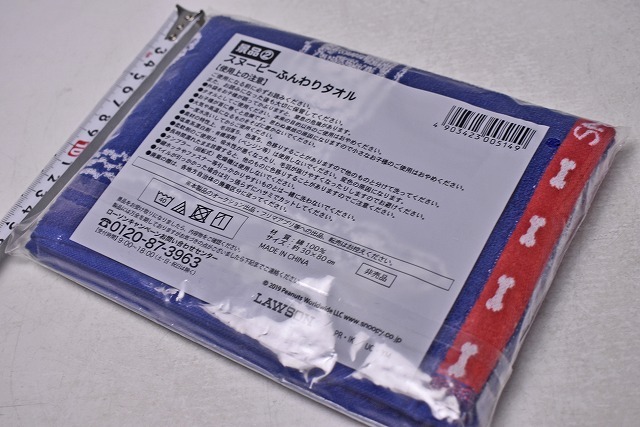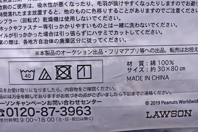 SNOOPY ★ スヌーピー ★ ふんわり タオル ★ 景品 ★ 非売品 ★ 2019 ★ ローソン ★ 綿100% ★ 30cm x 80cm ★青 ★ 中古品 ★ 未使用