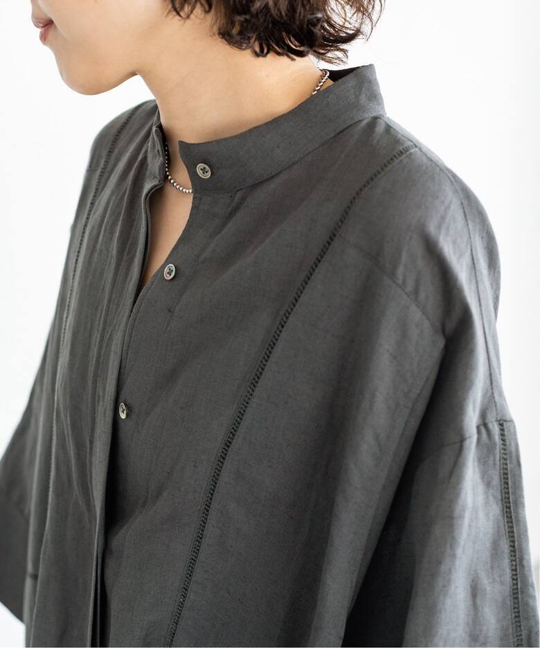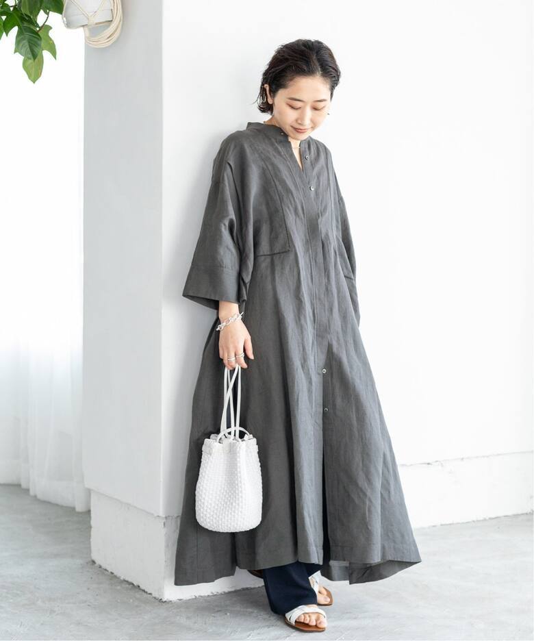 麻の風合いもあり、シンプルながら雰囲気のある一着に仕上がっています。