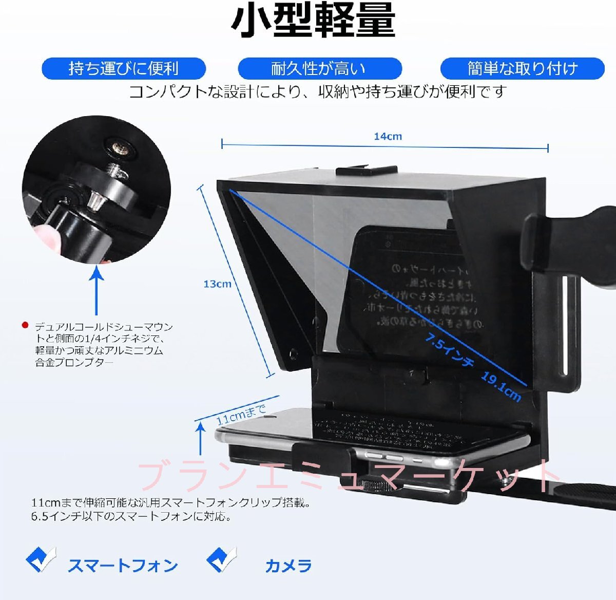 【小型軽量】プロンプター アルミニウム合金製 7.5インチ HDディスプレイ リモートコントロール付き スマートフォン カメラに対応 オンライ
