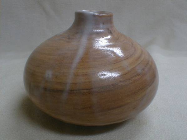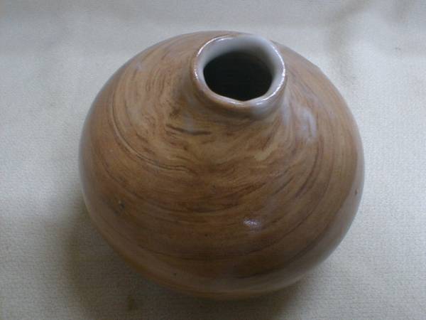 螺旋模様 渋い釉薬 一輪挿し 花瓶 8x10.5cm 陶器製飾り置物