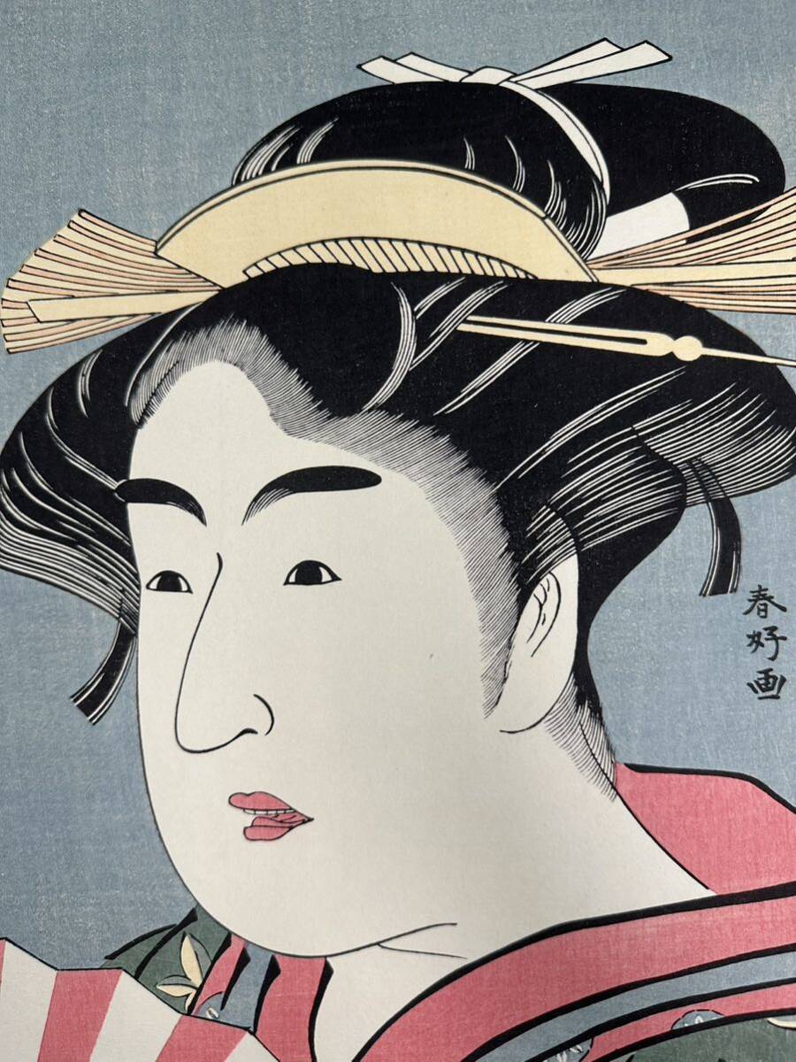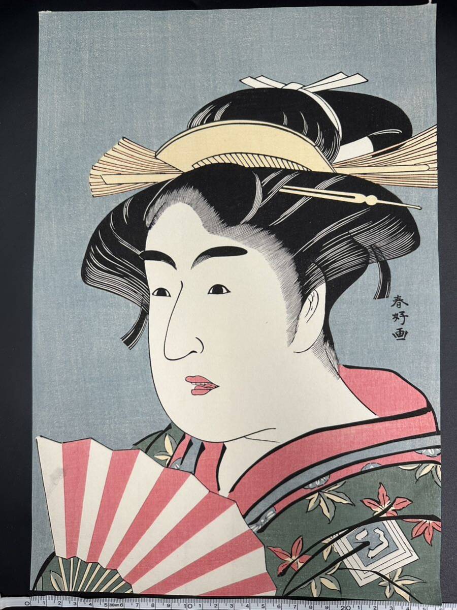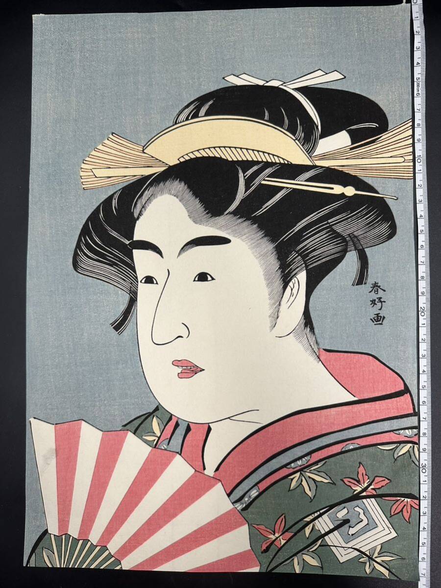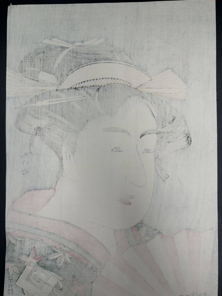 【真作】大正期 浮世絵木版画 勝川春好「二世市川門之助のお染」美人画 大判 錦絵 保存良い