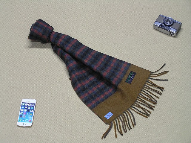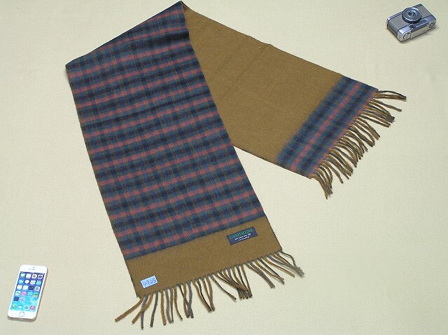 リバーシブルマフラー 使用1回 信頼の日本製 Japan Made ♪ カシミヤ Cashmere ♪コーデを引き締めるBrown茶系 メンズ 132㎝×30㎝■4905 | |