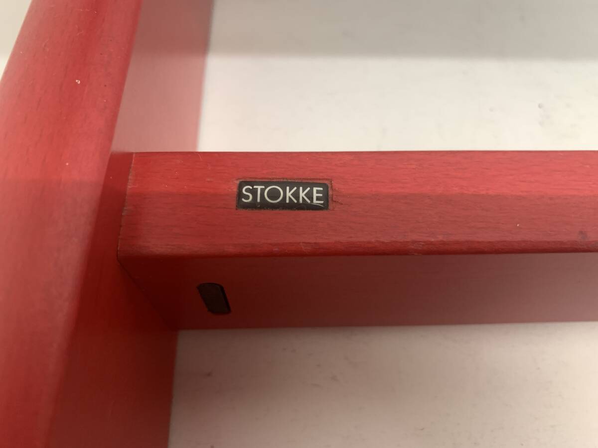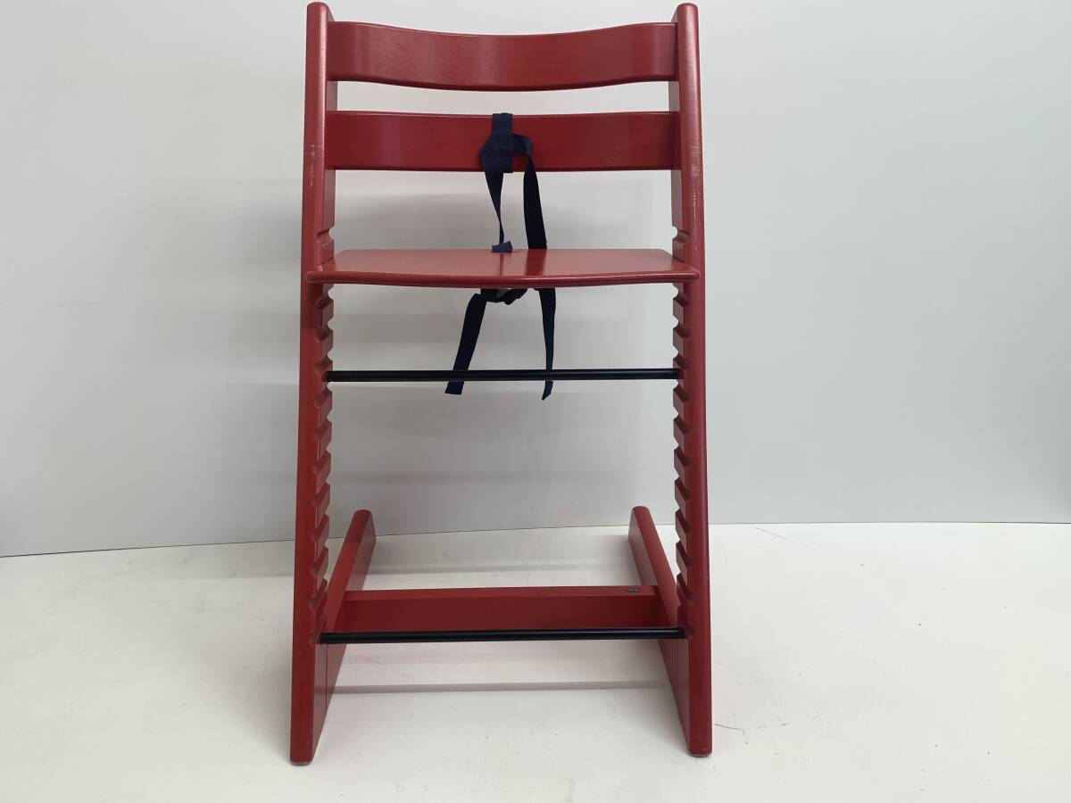 ○434「引取り歓迎」STOKKE インテリア 家具 トラップ 椅子 チェア イス 赤ちゃん ベビー 高さ調節機能付き 子供 赤 red 木製家具