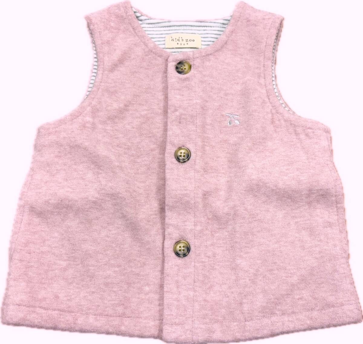 即決 新品タグ付 kid's zoo キッズズー★裏ボーダー二重 パイル起毛 あったかベスト★ベビー 90cm 1-2才目安 ¥2640