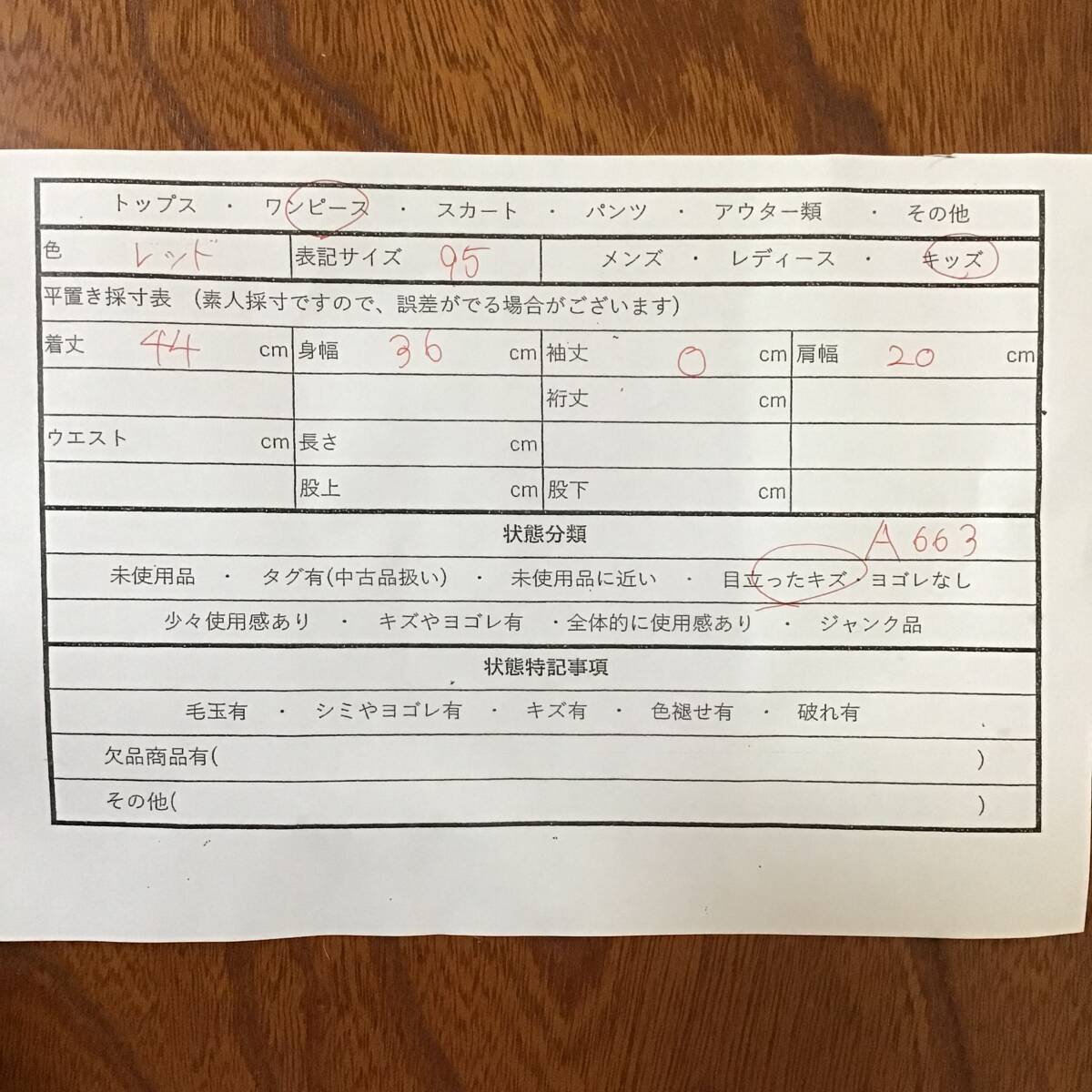 詳しい平置き採寸は、写真にて掲載しております。