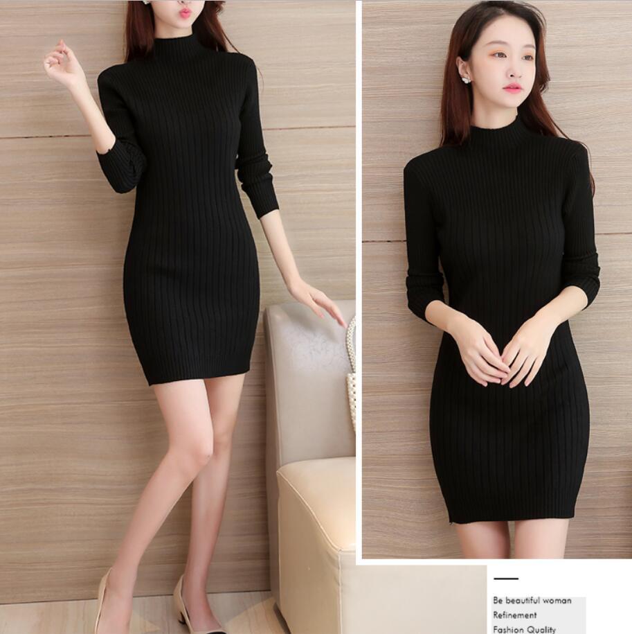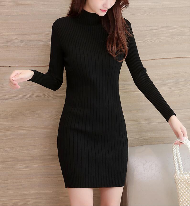 秋冬~オシャレ 大人 セーター ニットワンピース 上品 ミディ丈ワンピース キレイめ ニット タイトワンピース 着やせ 長袖ワンピース~黒